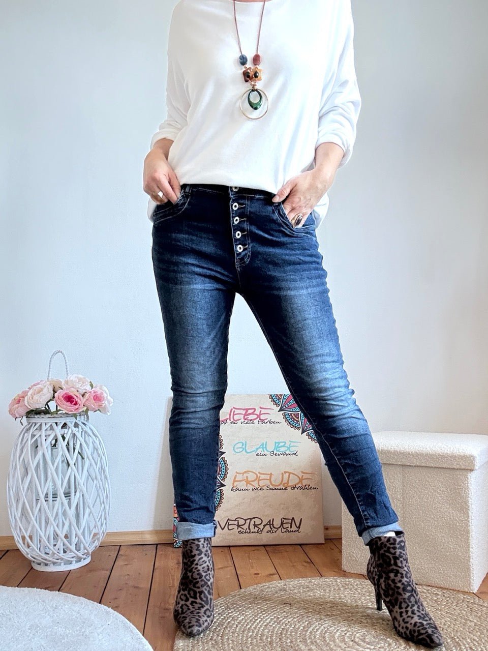 - Jeansschlaufen bitte nicht zum hochziehen der Hose nutzen !