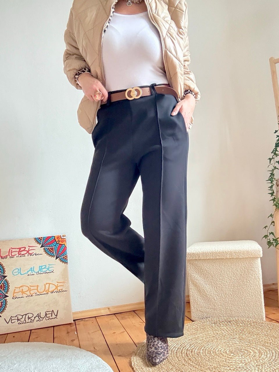 Hose Marlen mit Gürtel Schwarz