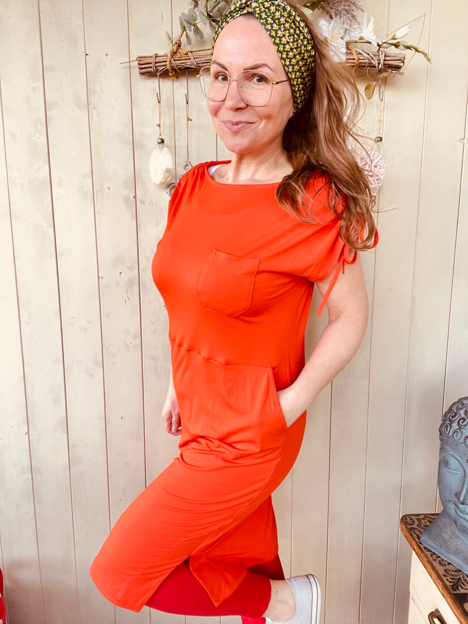 • Wunderschönes, leichtes, sporliches Kleid in Korallen Rot