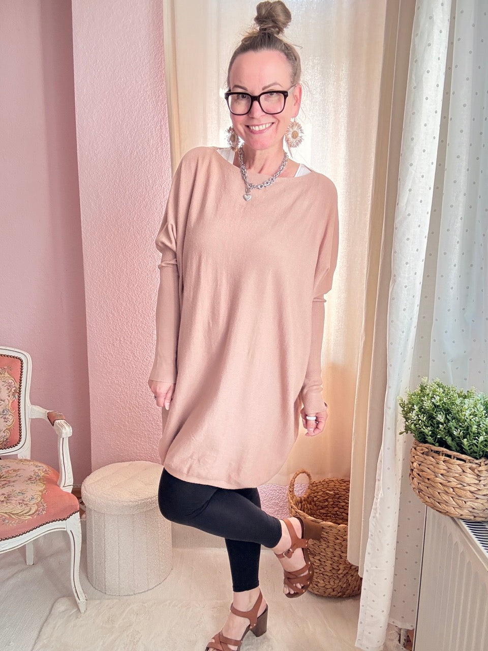 • Super lässiger, oberschenkellanger Oversize- Long-Pulli in Nude, ein absolutes Wohlfühlstück