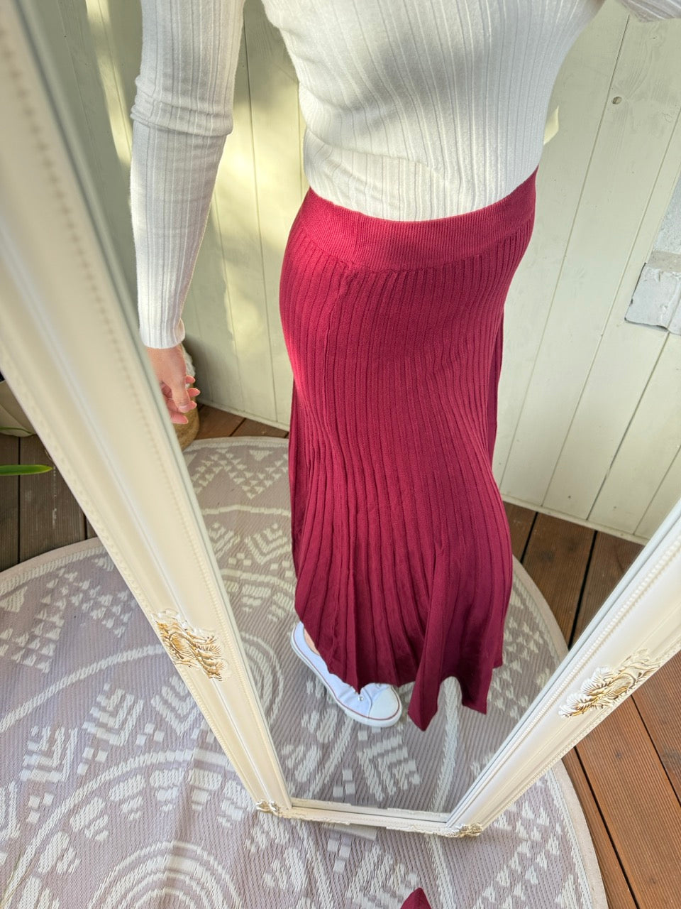- Wunderschöner, wadenlanger Strick Plissee Rock in Cherry