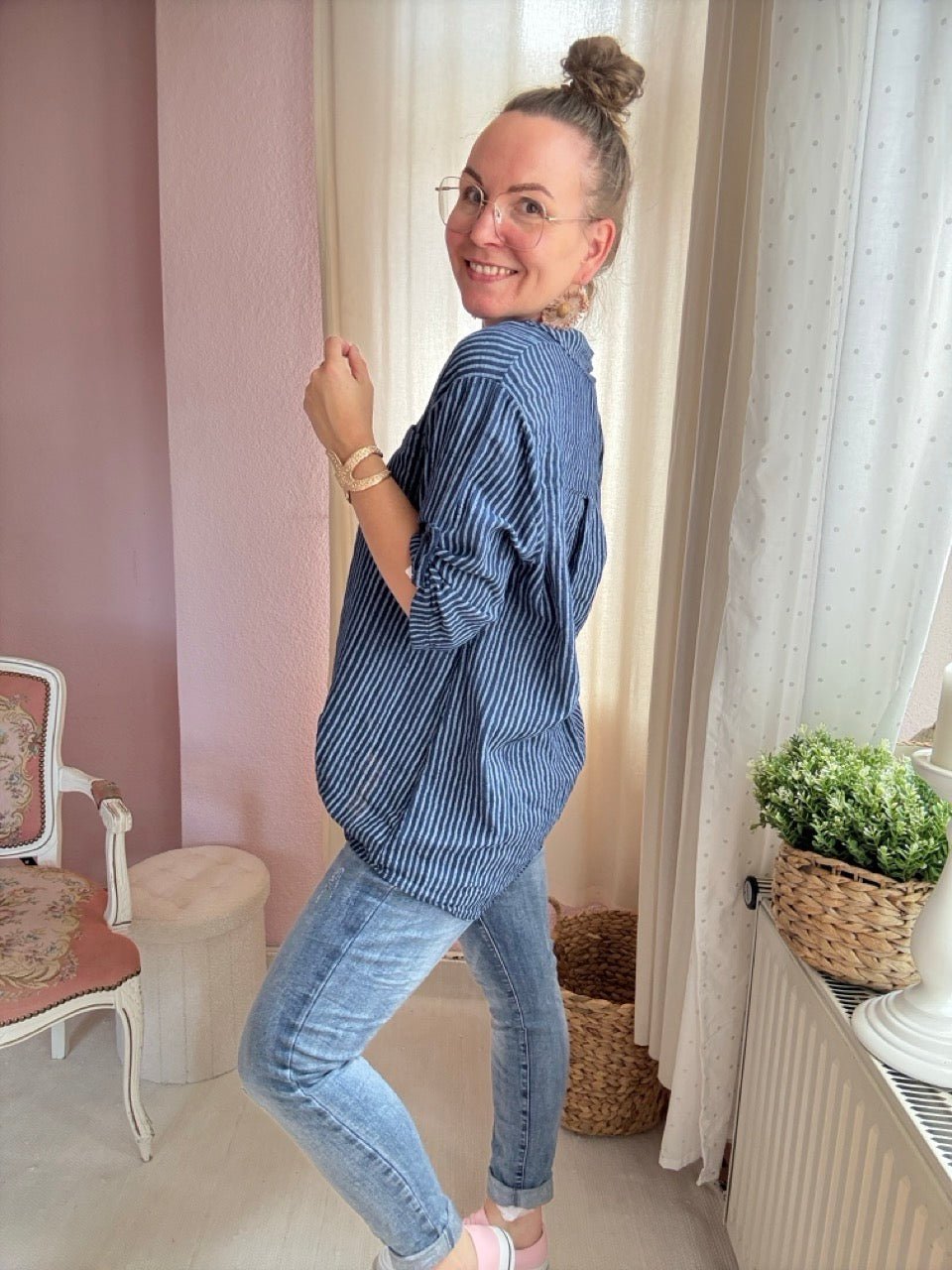 Bitte beachte: Die Bluse wird in maximal zwei Farbvarianten verschickt, damit keine Auswahlpakete entstehen und jedes Teil mit Liebe sein Zuhause findet.