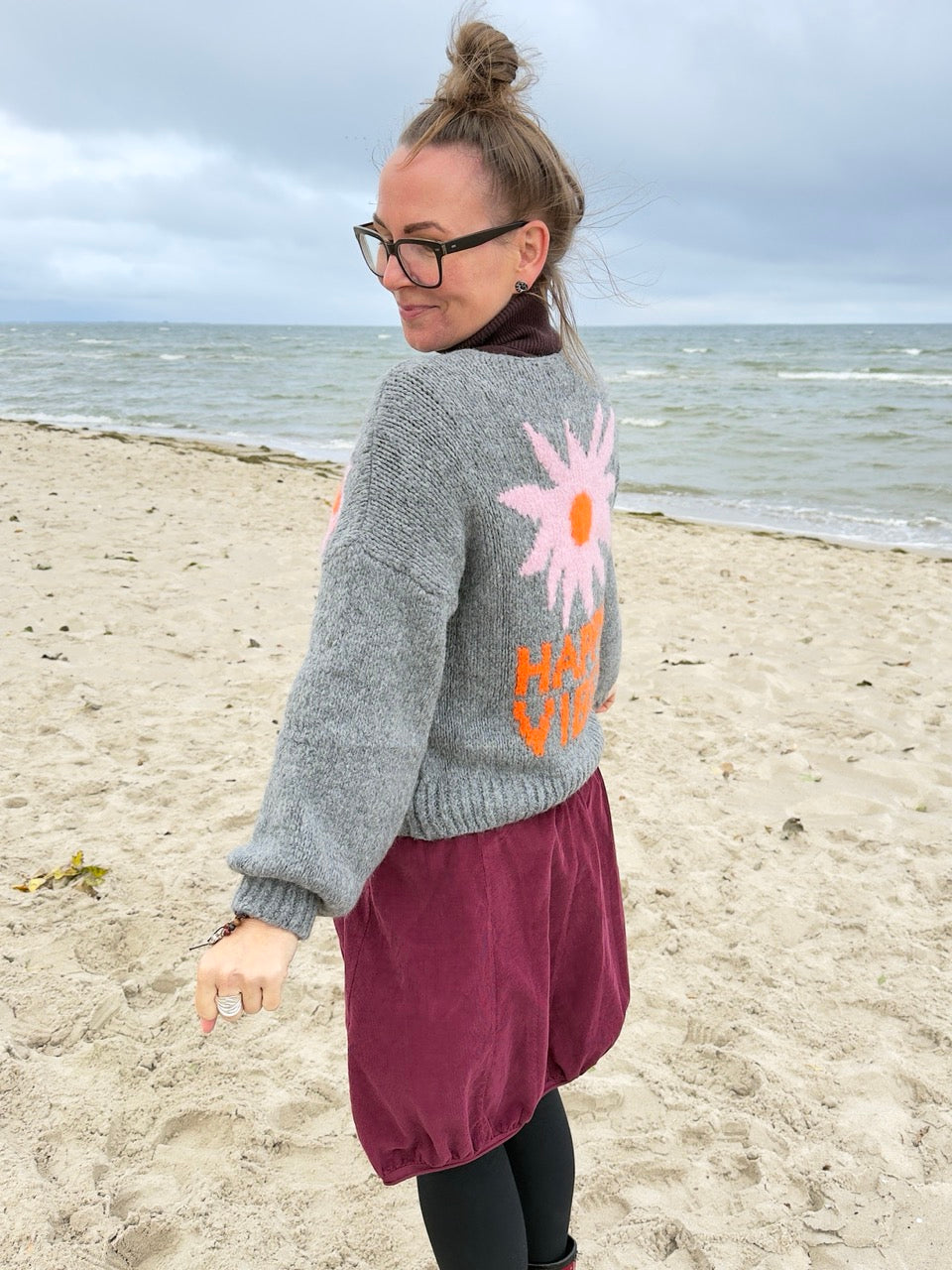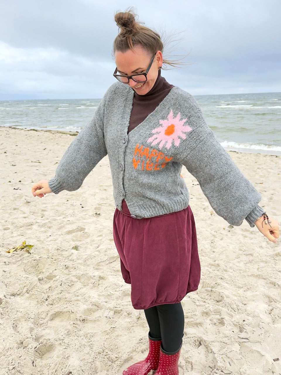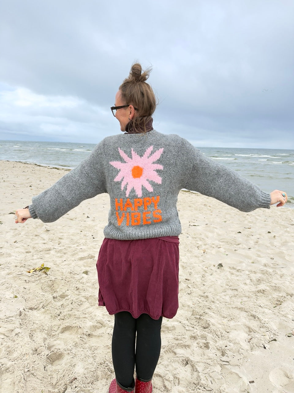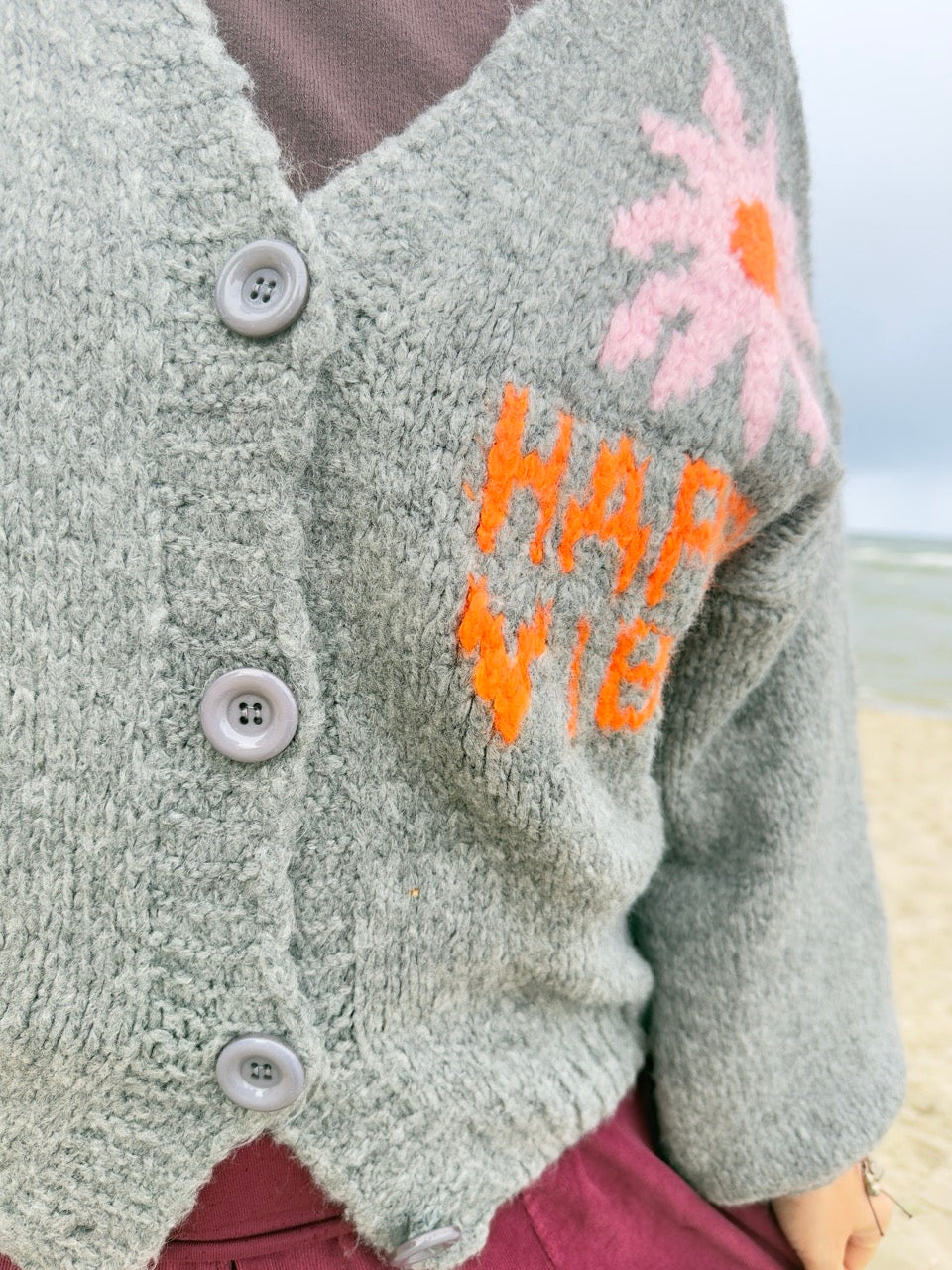 Strickjacke Happy Vibes Grau