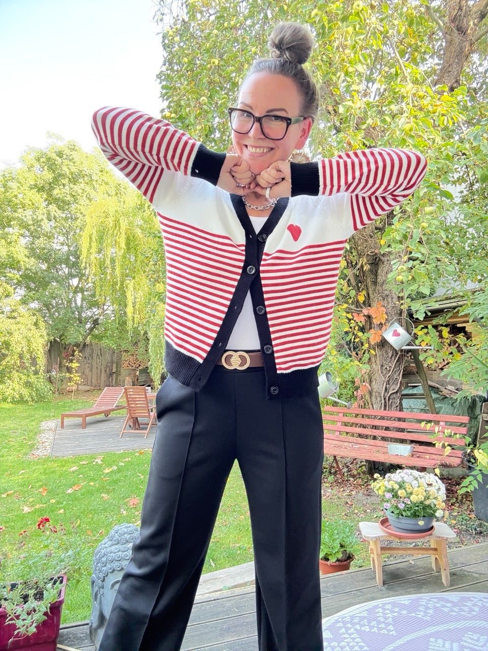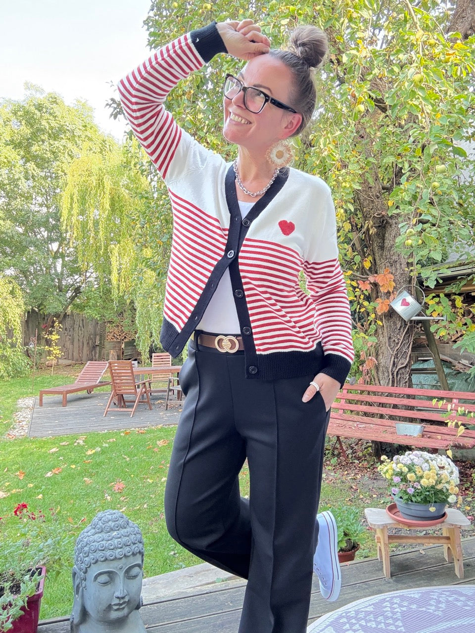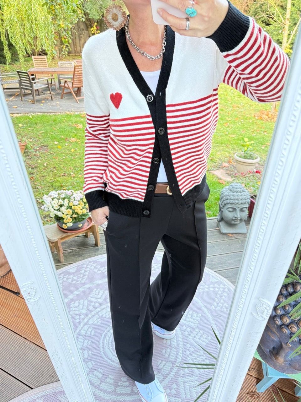 • Tolle Strickjacke in Weiß mit Streifen und Herz