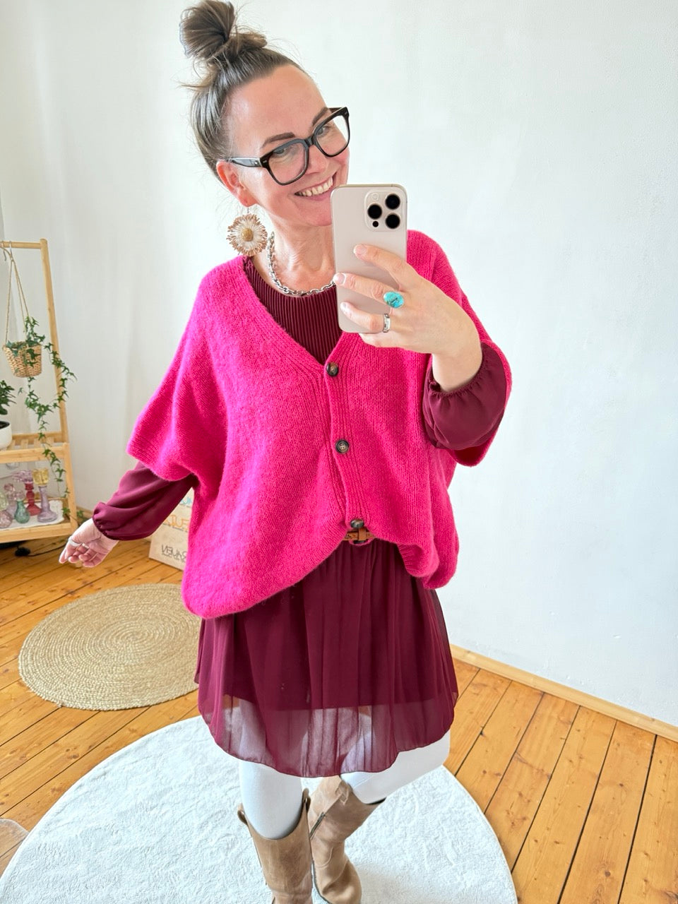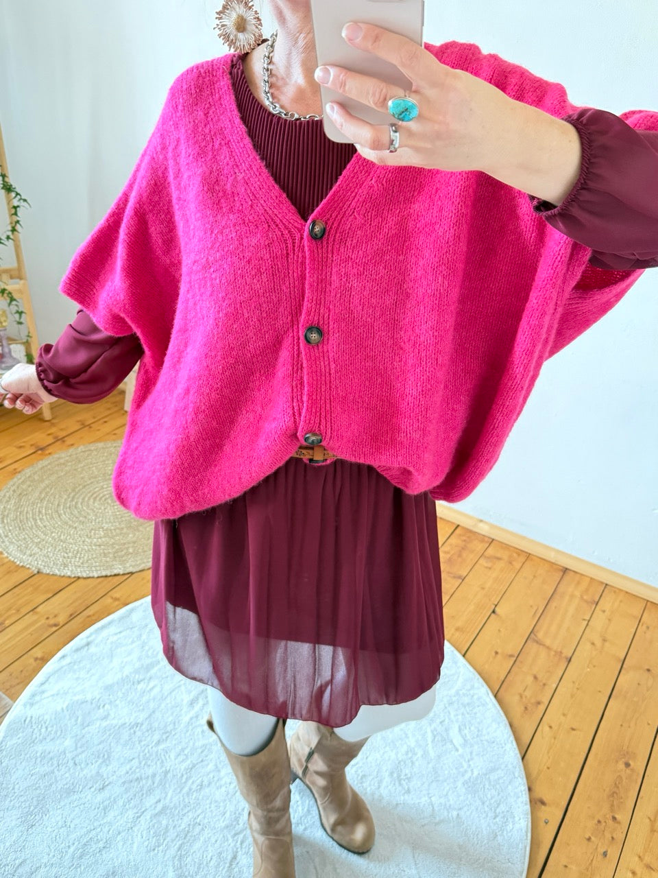 • Super gemütliche, weit geschnittene Strickjacke mit kurzen Armen in strahlendem Rose und kleinem Wollanteil
