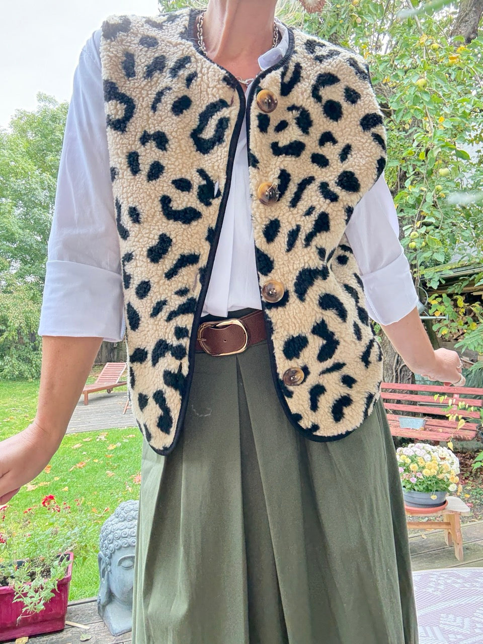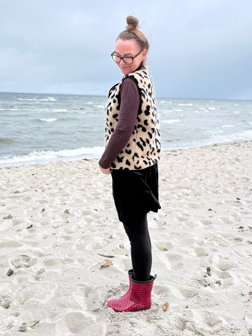 • Kuschelig weiche Teddy Weste in Leo Optik, Beige