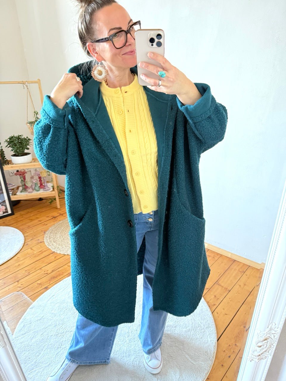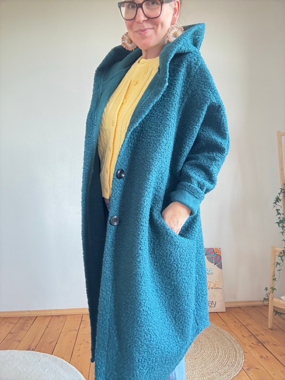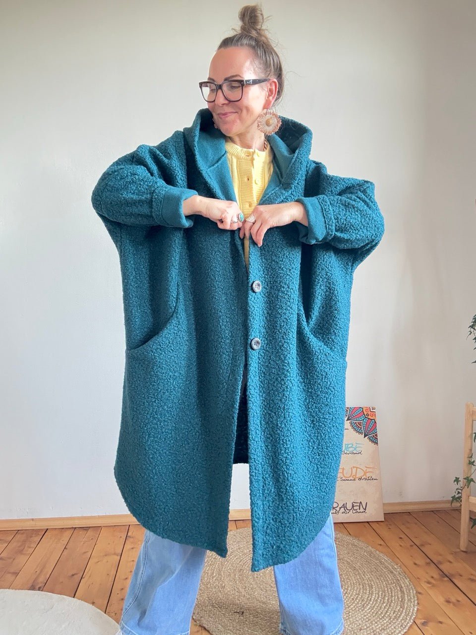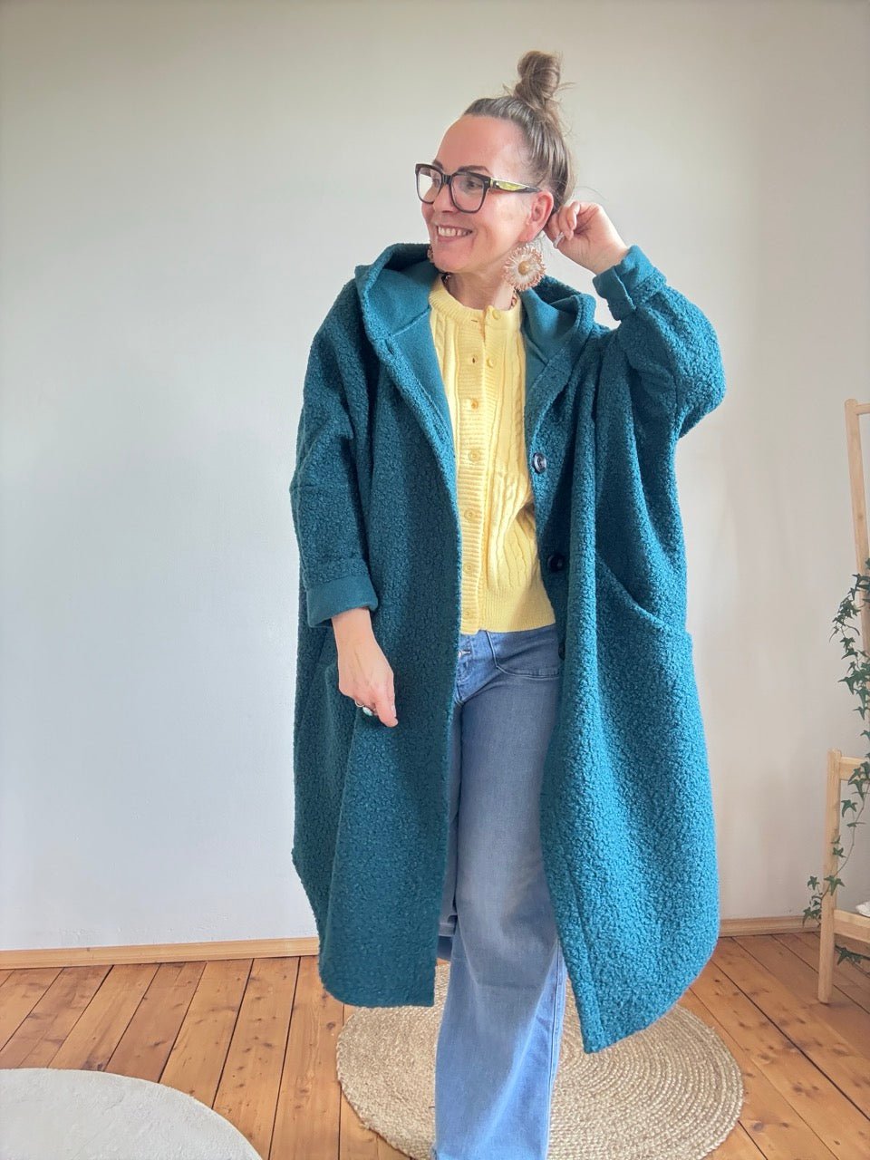 • weit geschnitten - viel Platz für kuschelige Oberteile - angesagter Oversize Teddy Look - Größenempfehlung beachten!