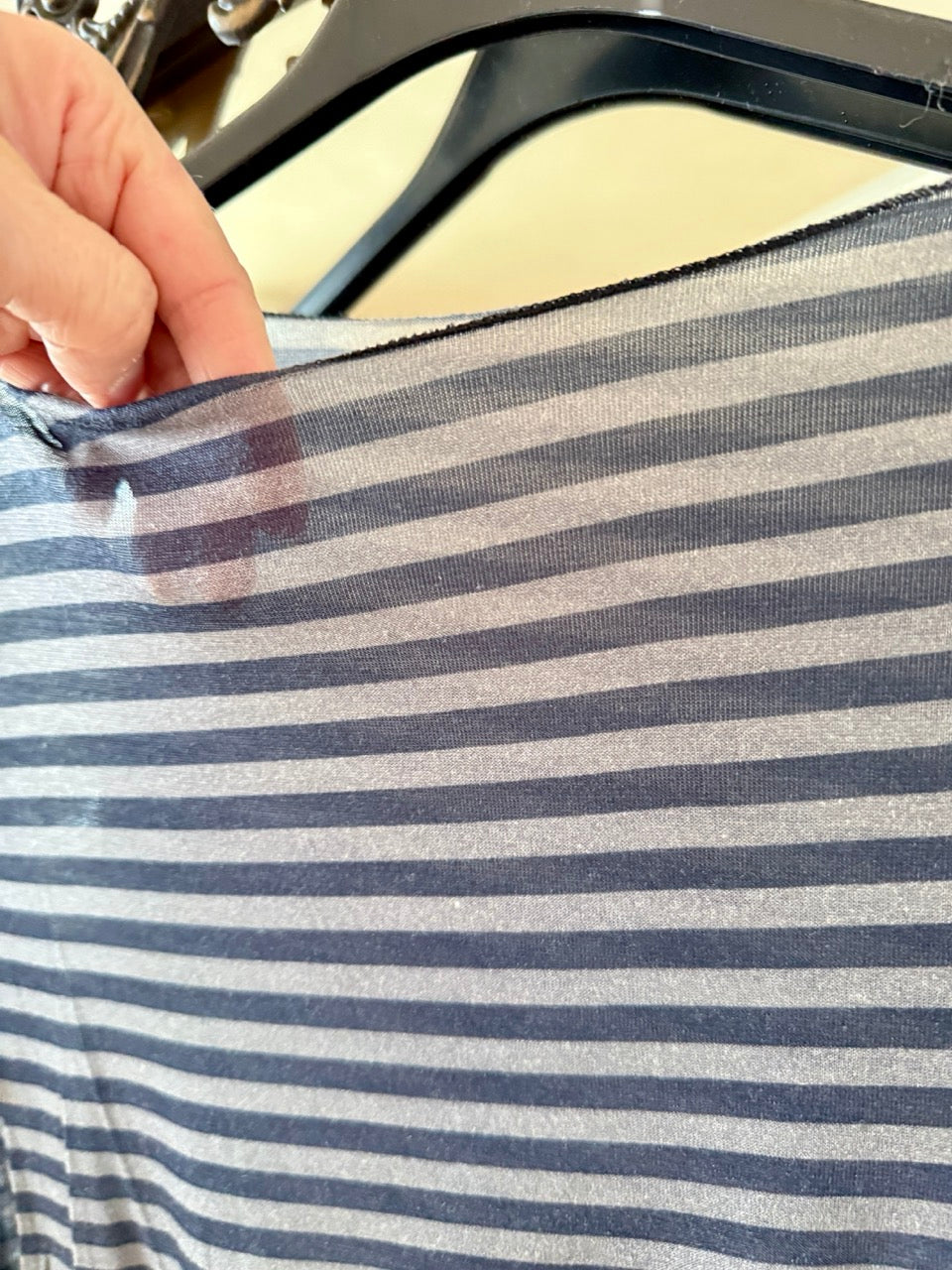 • Tolles, leicht transparentes Langarmshirt in Jeansblau mit Streifen
