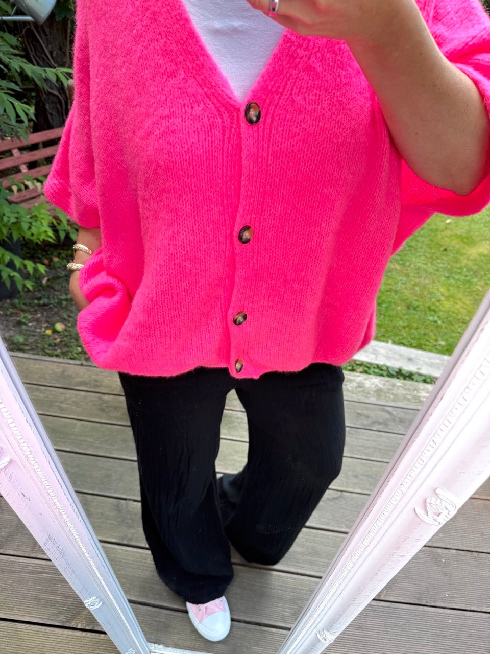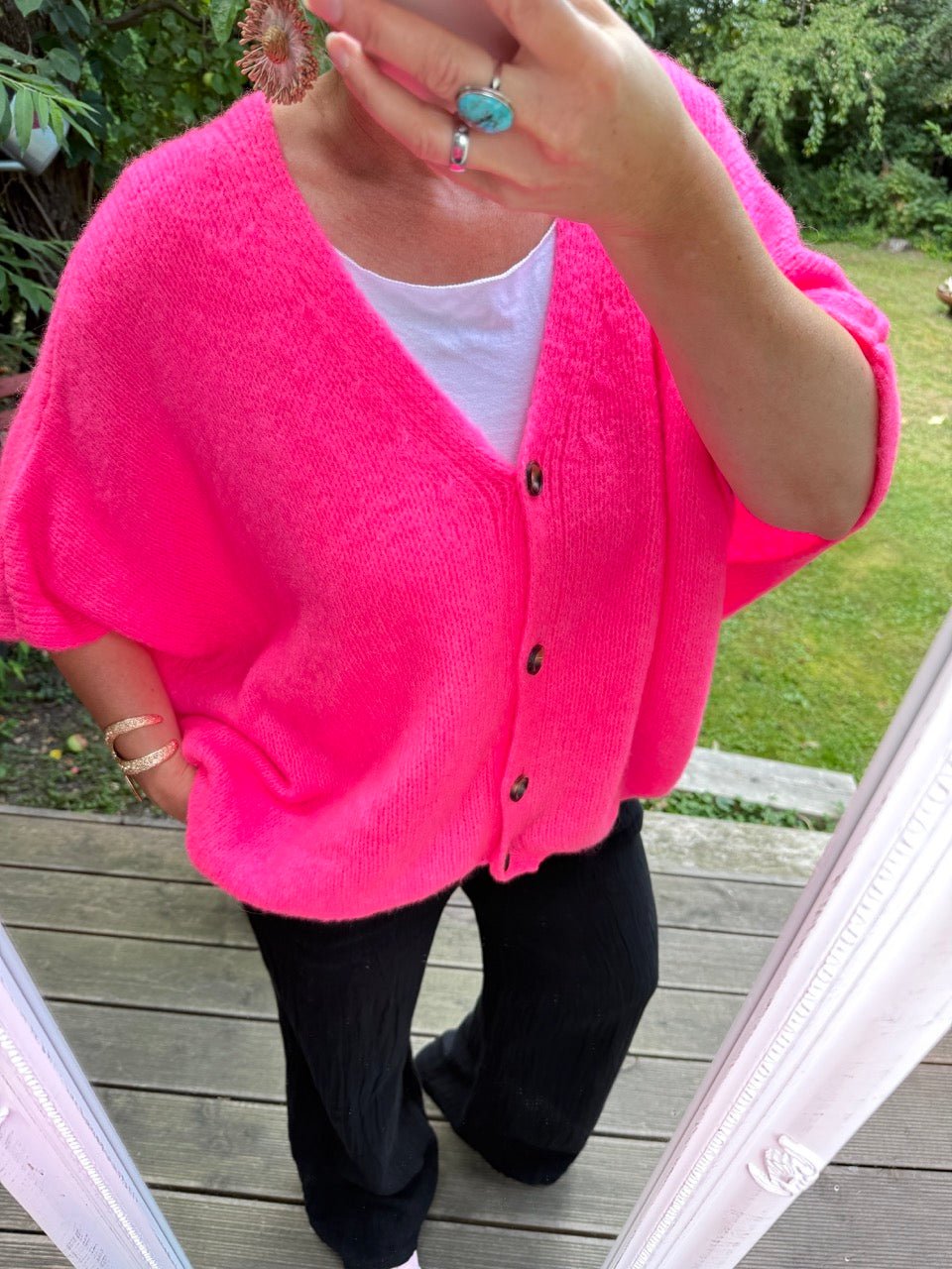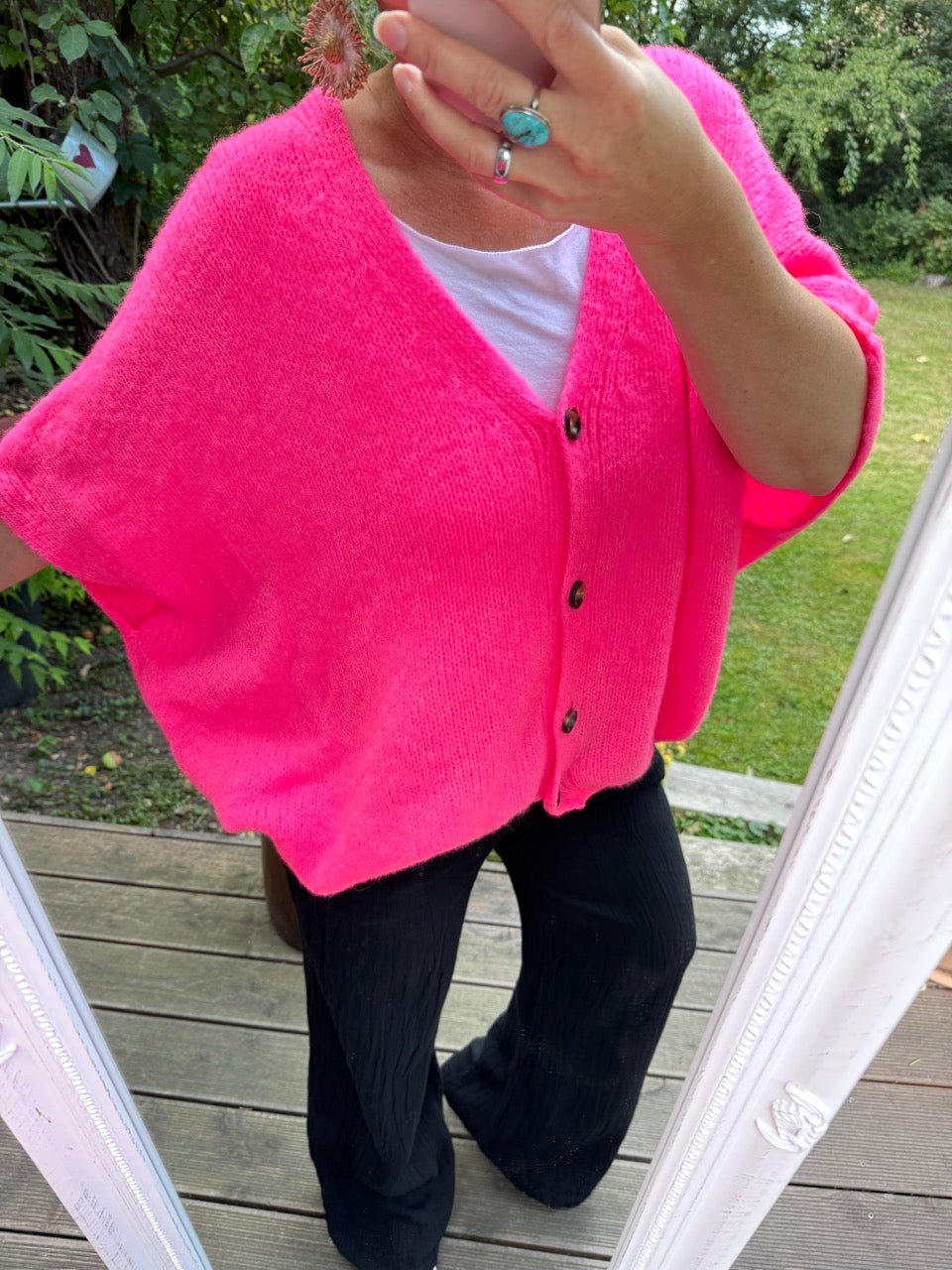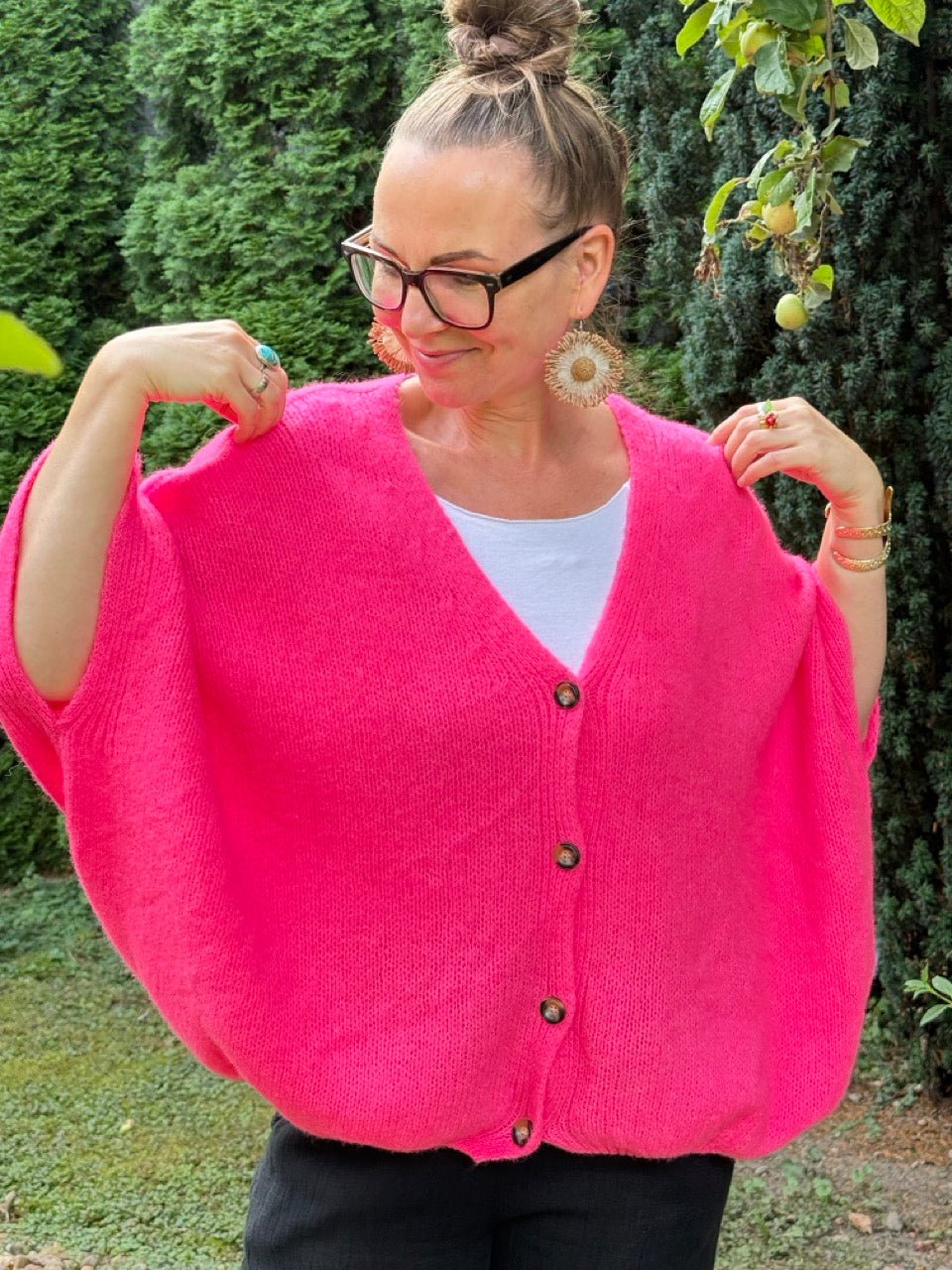 • Super gemütliche, weit geschnittene Strickjacke mit kurzen Armen in strahlendem Fuchsia und kleinem Wollanteil