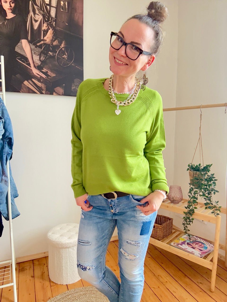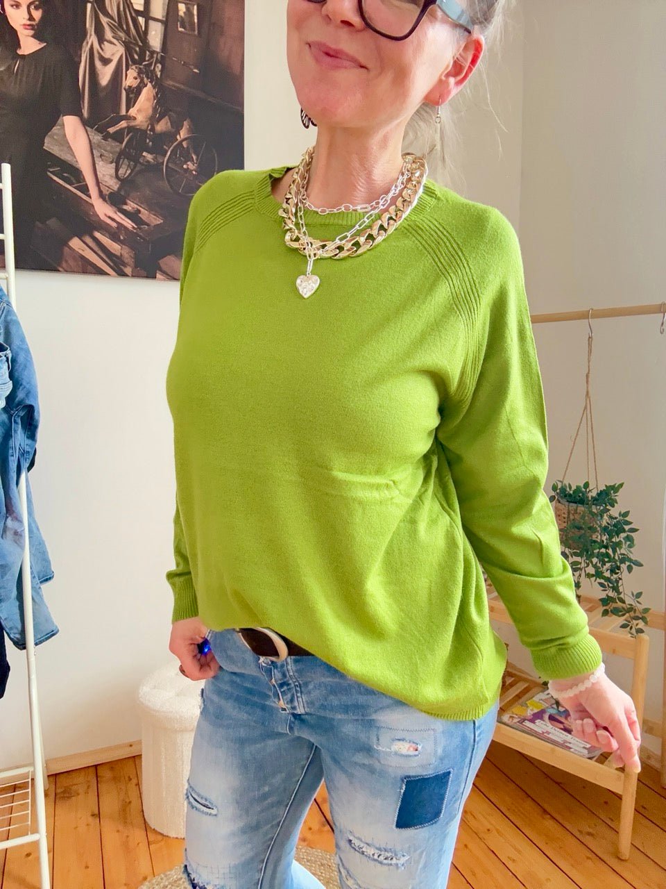 Regulärer Preis 25,99 €• Toller, entspannt geschnittener Pulli in Kiwi Grün, ein Alltagsheld