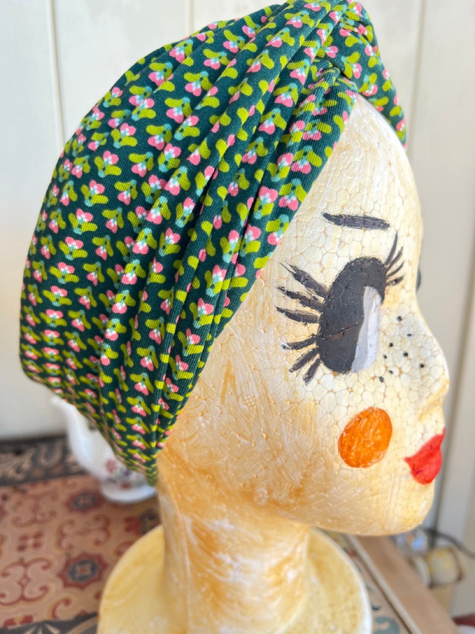 ♥ Extra breites, anschmiegsames Haarband aus einer tollen Viskose-Elasthan-Mixtur in Grün mit Blütenmuster