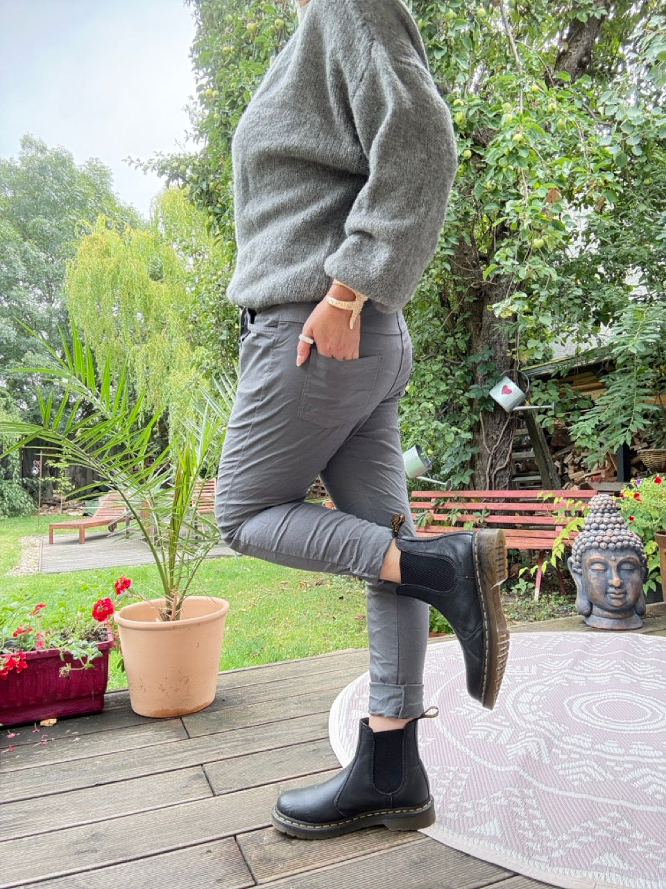 • Dies ist eine lässiger Schnitt mit einem leicht tiefer sitzendem Schritt, kann aber auch gern figurnah getragen werden