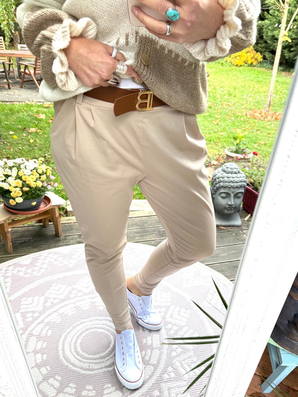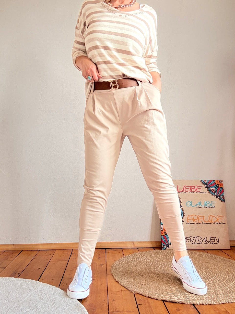 • sehr stylisch mit schmaler geschnittenem Wadenbund - kann im Sommer auch nach oben gezogen werden! Kleinere Damen können sie hochschlagen