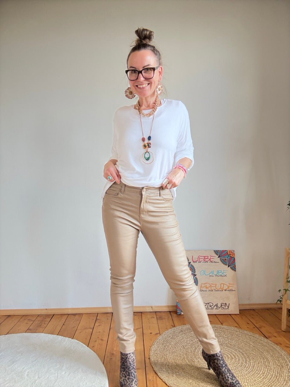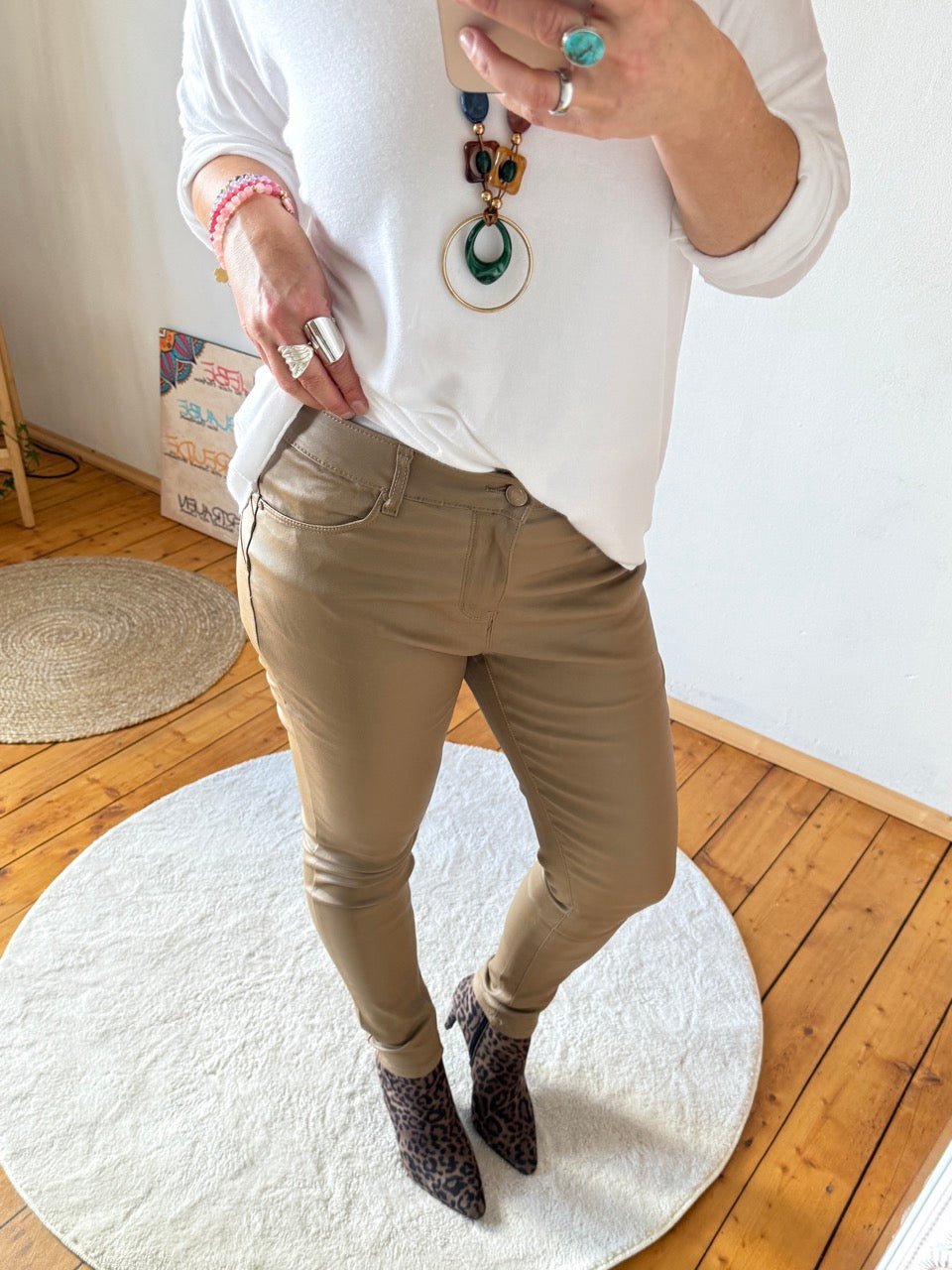 • Bequeme Push Up Lederimitat Hose in Milchkaffee
