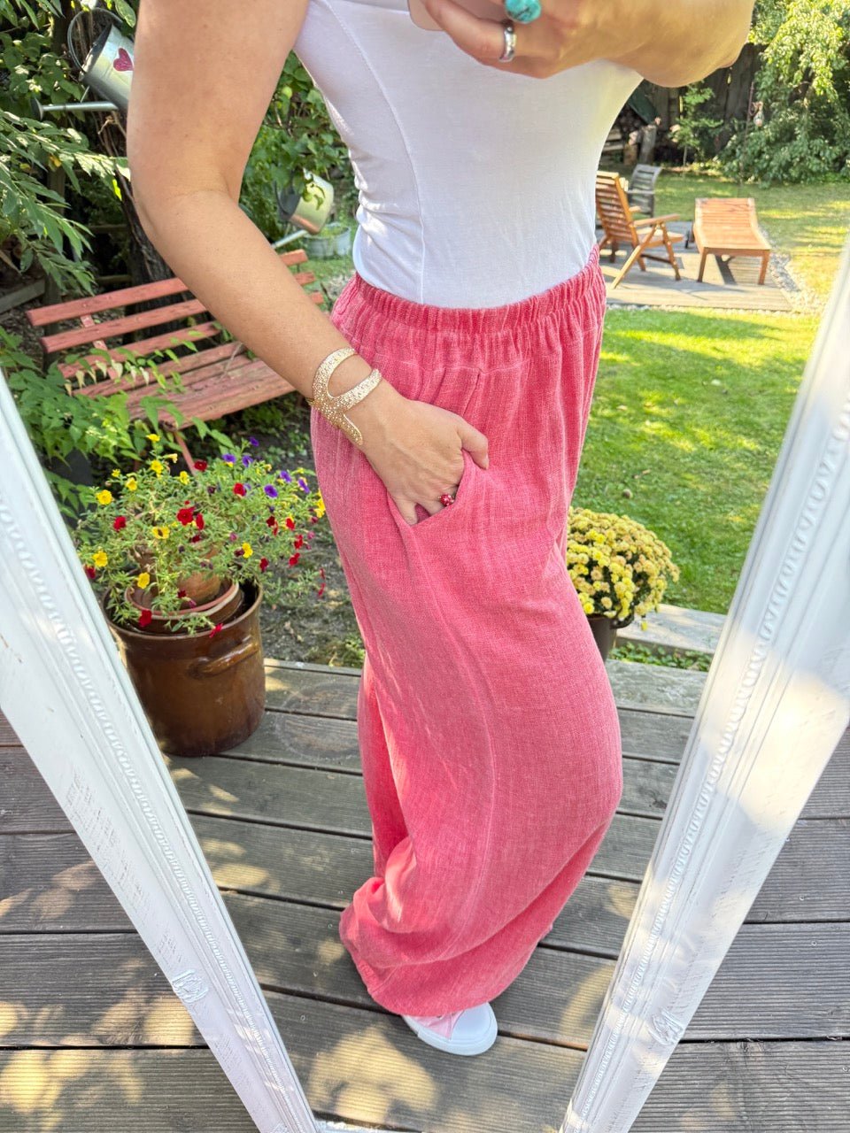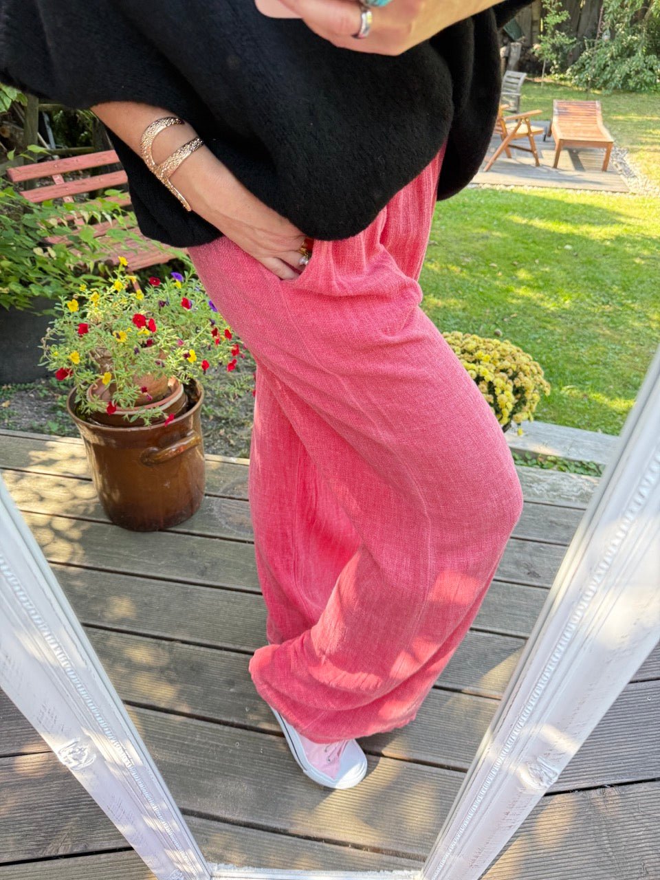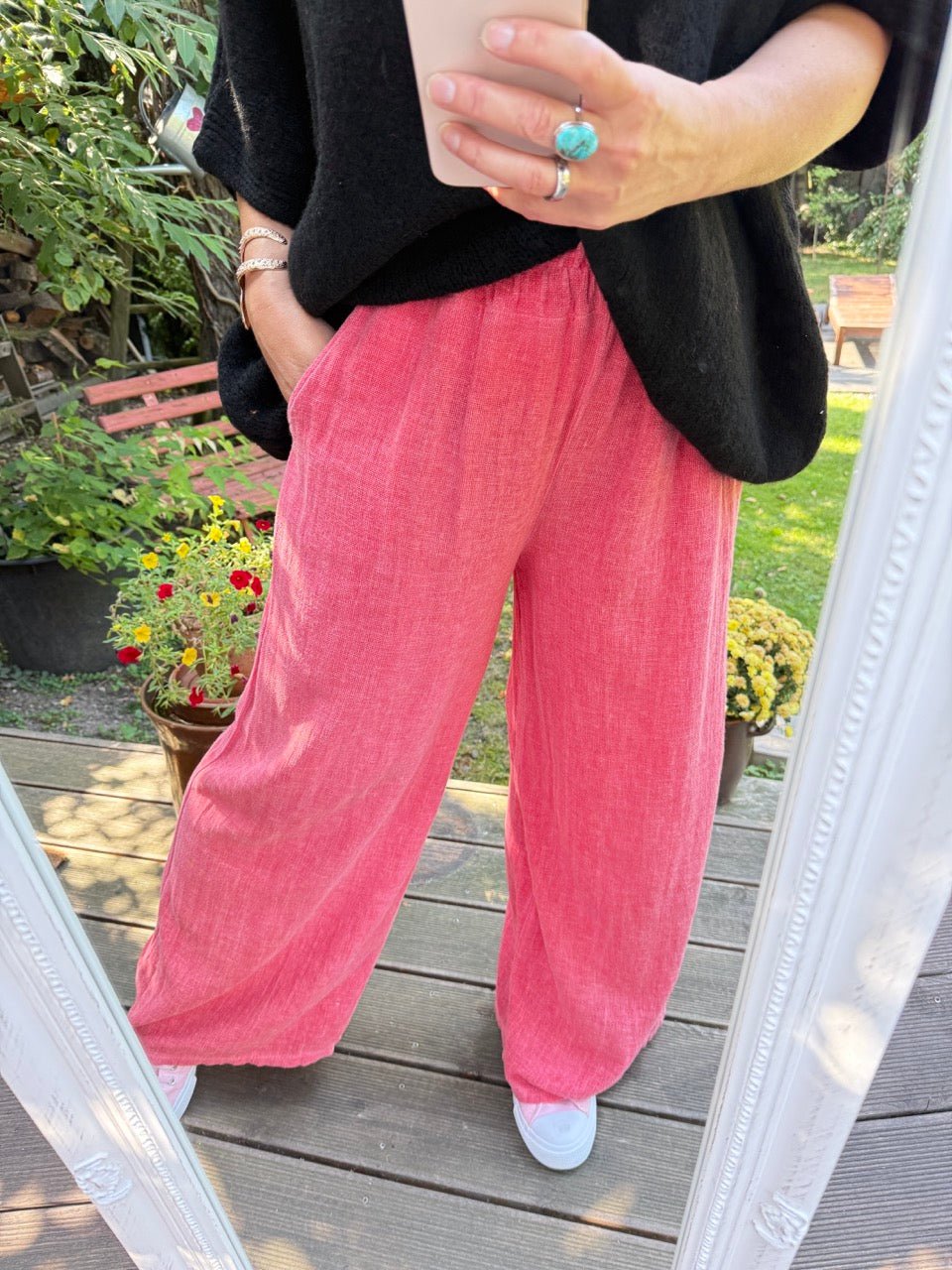 • Bequeme Leinen Hose im Culotte Schnitt mit leicht ausgestelltem Bein, in Koralle