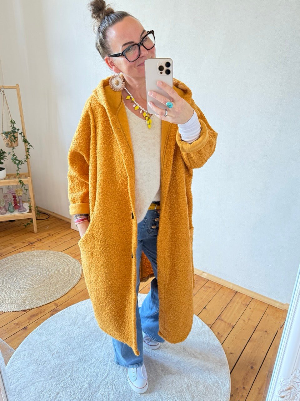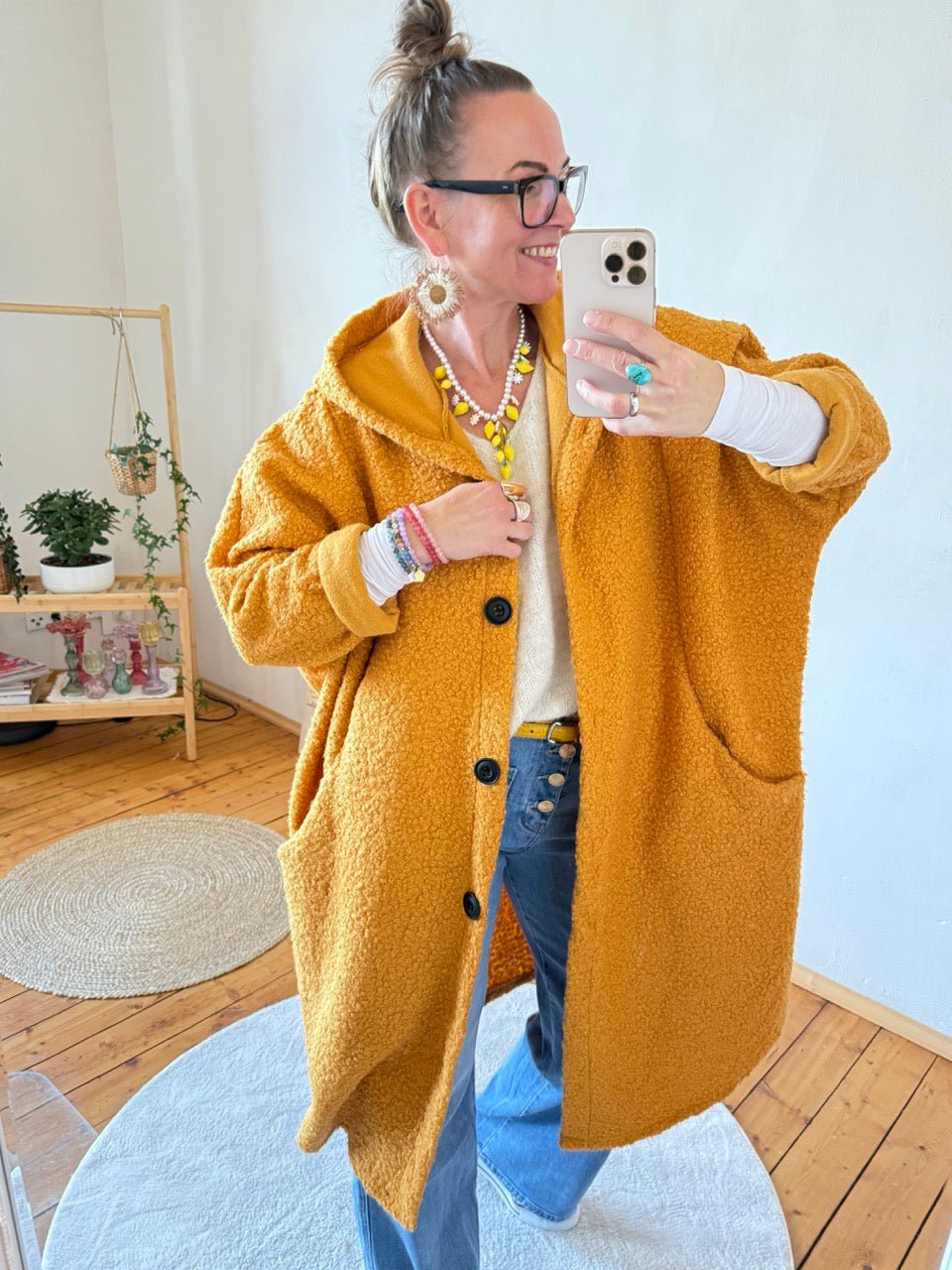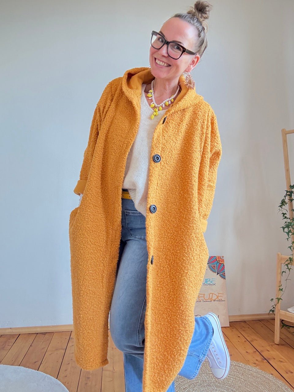 • Weicher, super entspannt geschnittener, Oversize Mantel in tollem Senfgelb