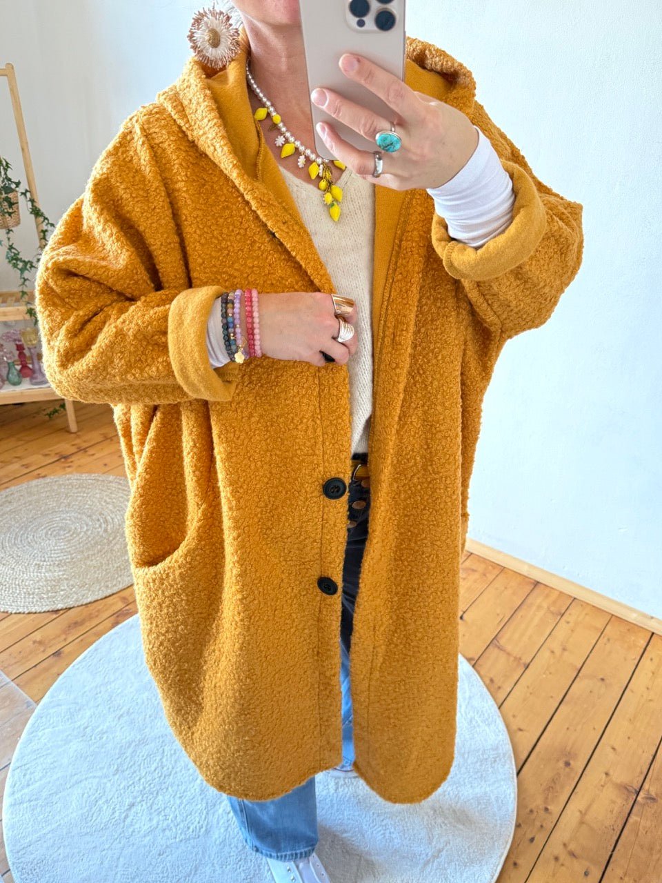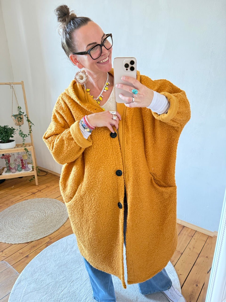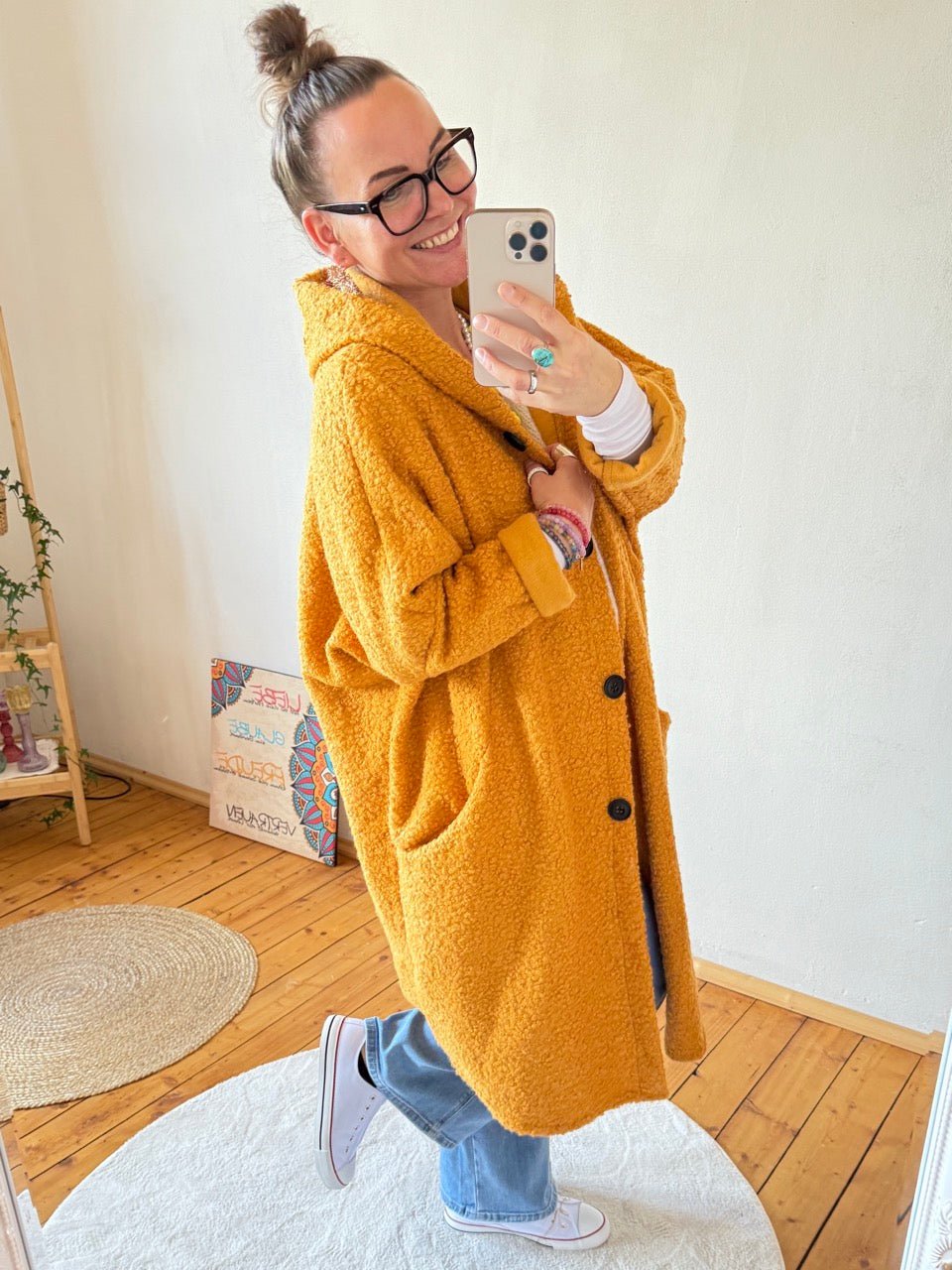 • Weicher, super entspannt geschnittener, Oversize Mantel in tollem Senfgelb