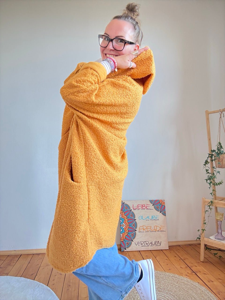 • weit geschnitten - viel Platz für kuschelige Oberteile - angesagter Oversize Teddy Look - Größenempfehlung beachten!