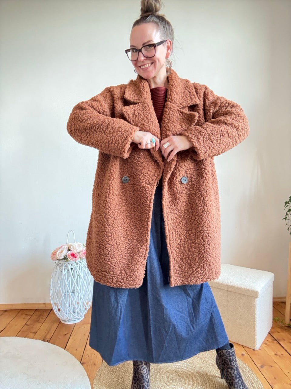 Regulärer Preis 41,99 €• Weicher Teddy Mantel in Nugat