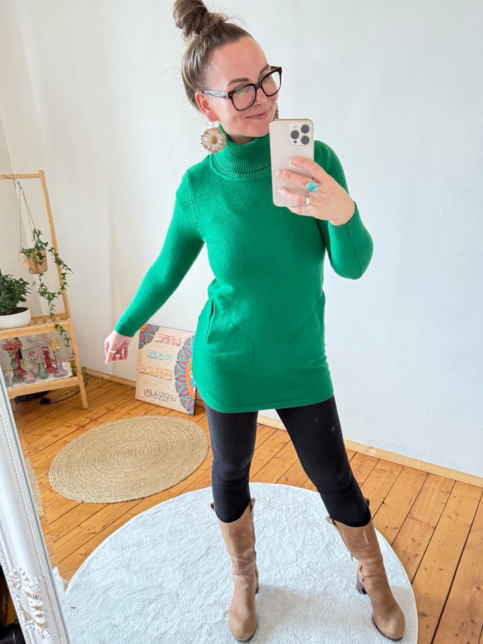 • Super gemütliches Strick-Kleid in Grün Uni-Farben und dadurch toll kombinierbar