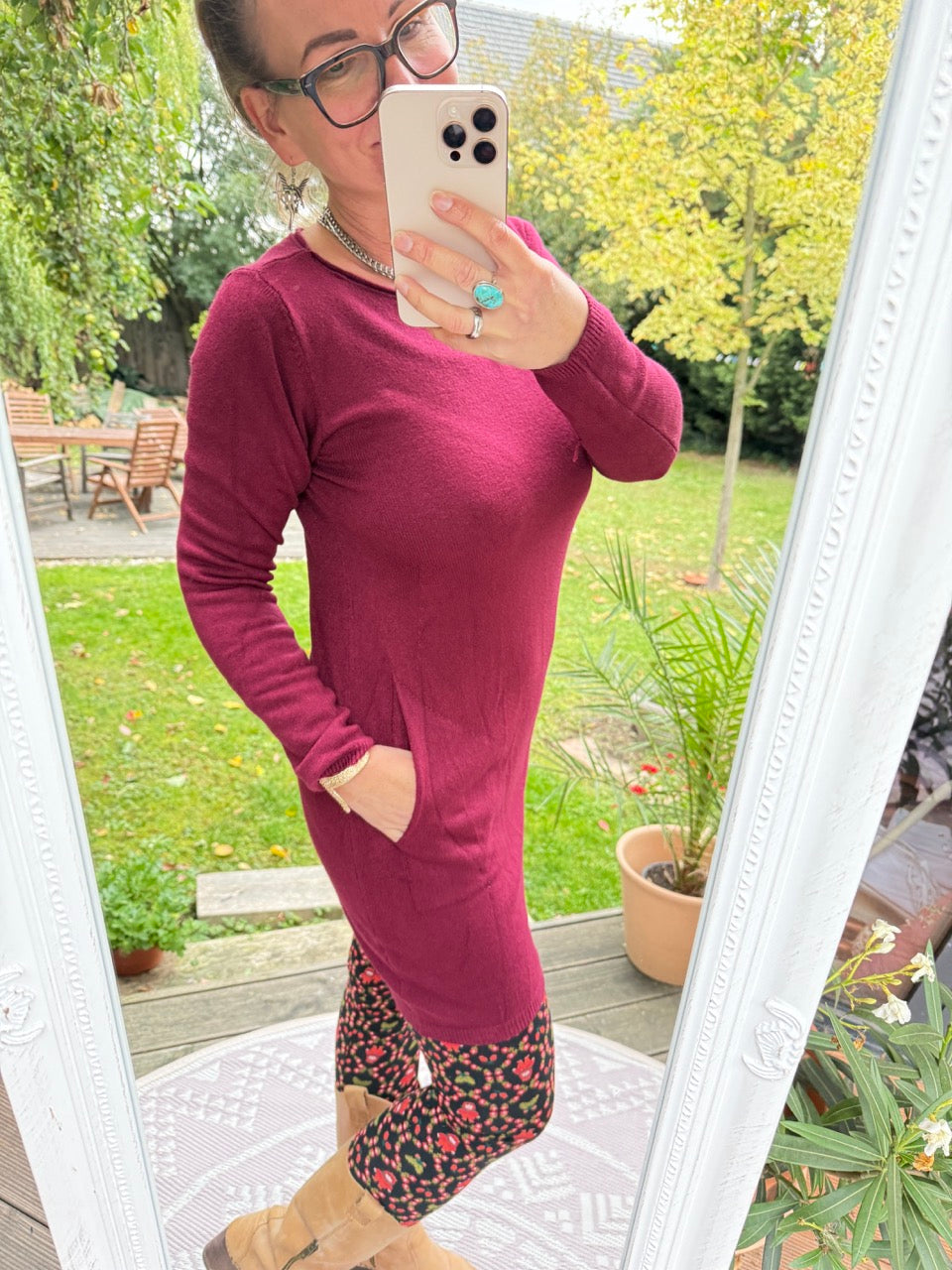 • Leichtes Strick-Kleid in Cherry Uni-Farben und dadurch toll kombinierbar