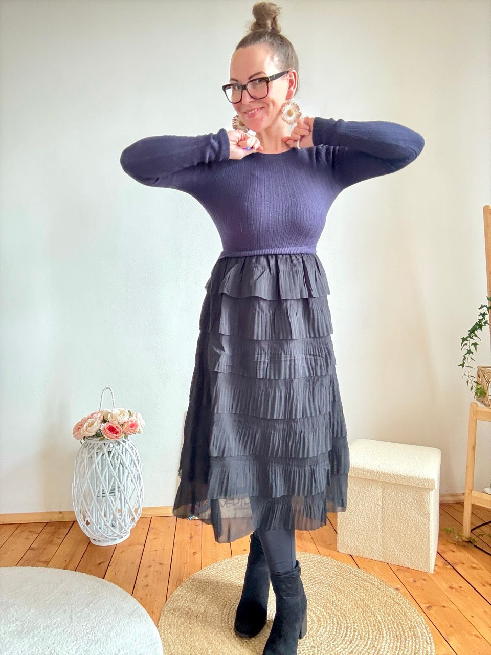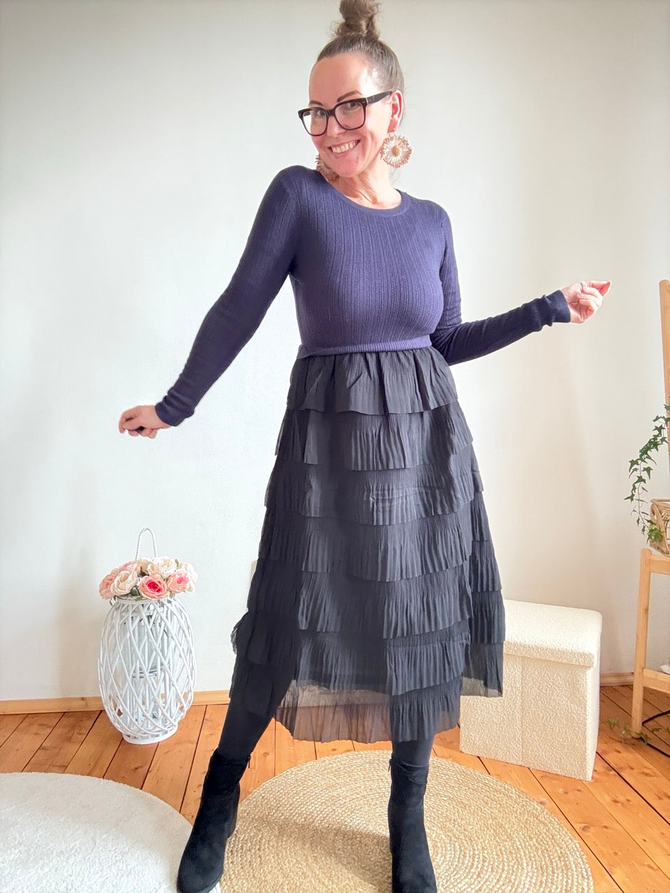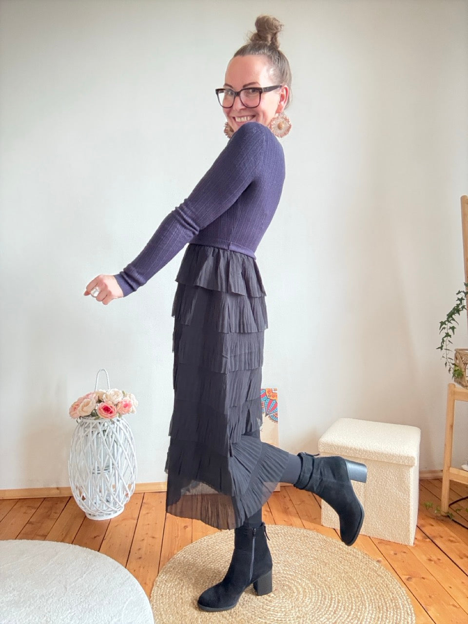 • Rockteil Schwarz, gestuft mit leichtem Fall, wadenlang