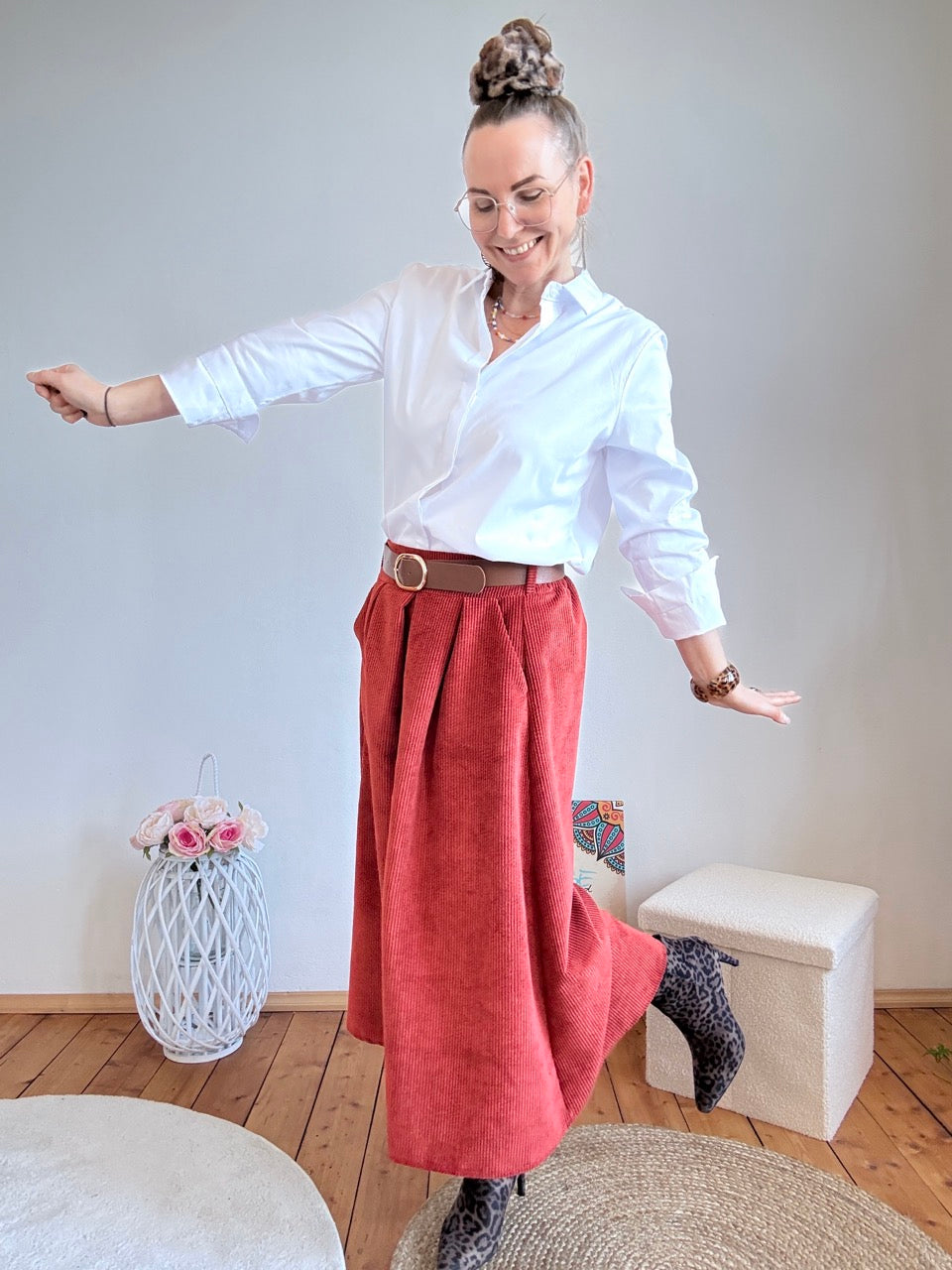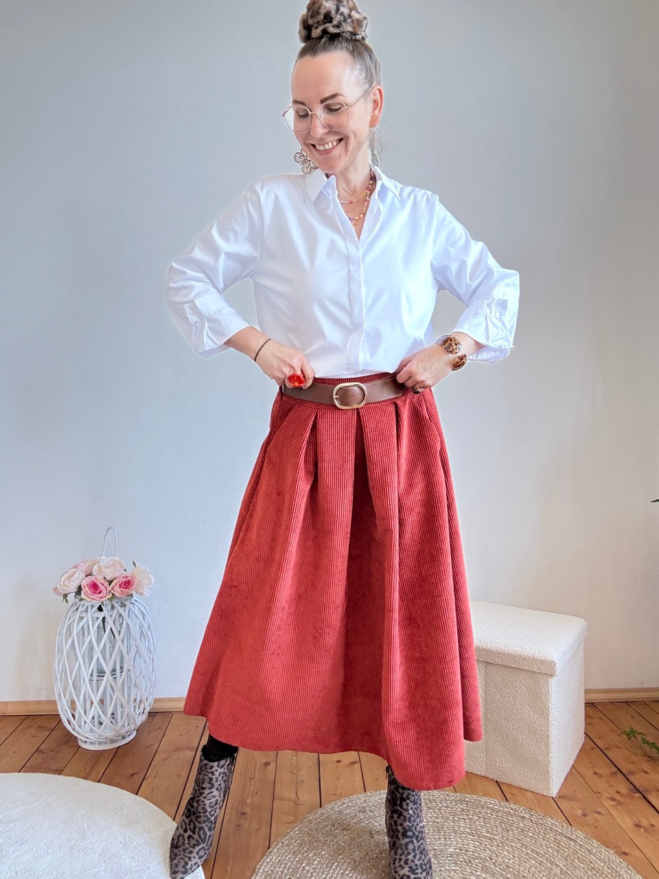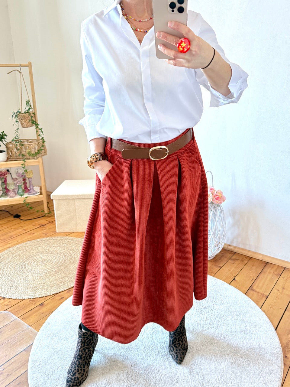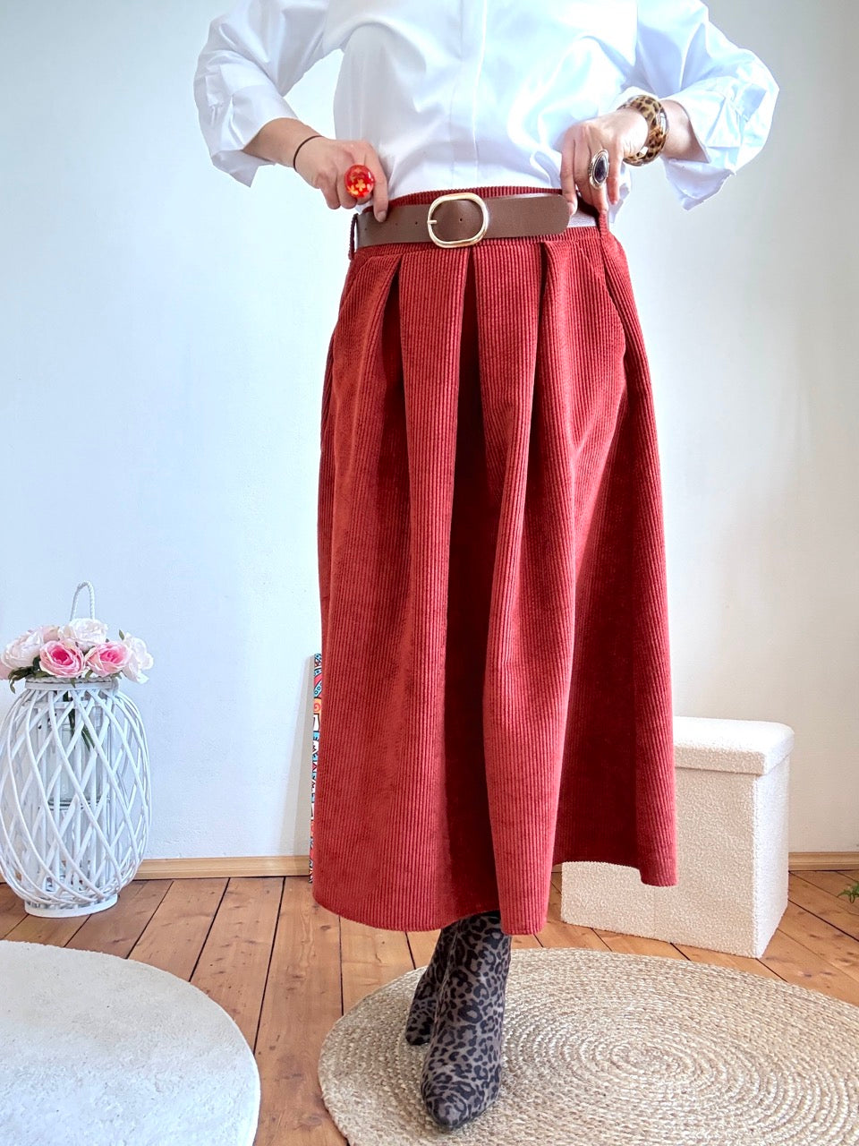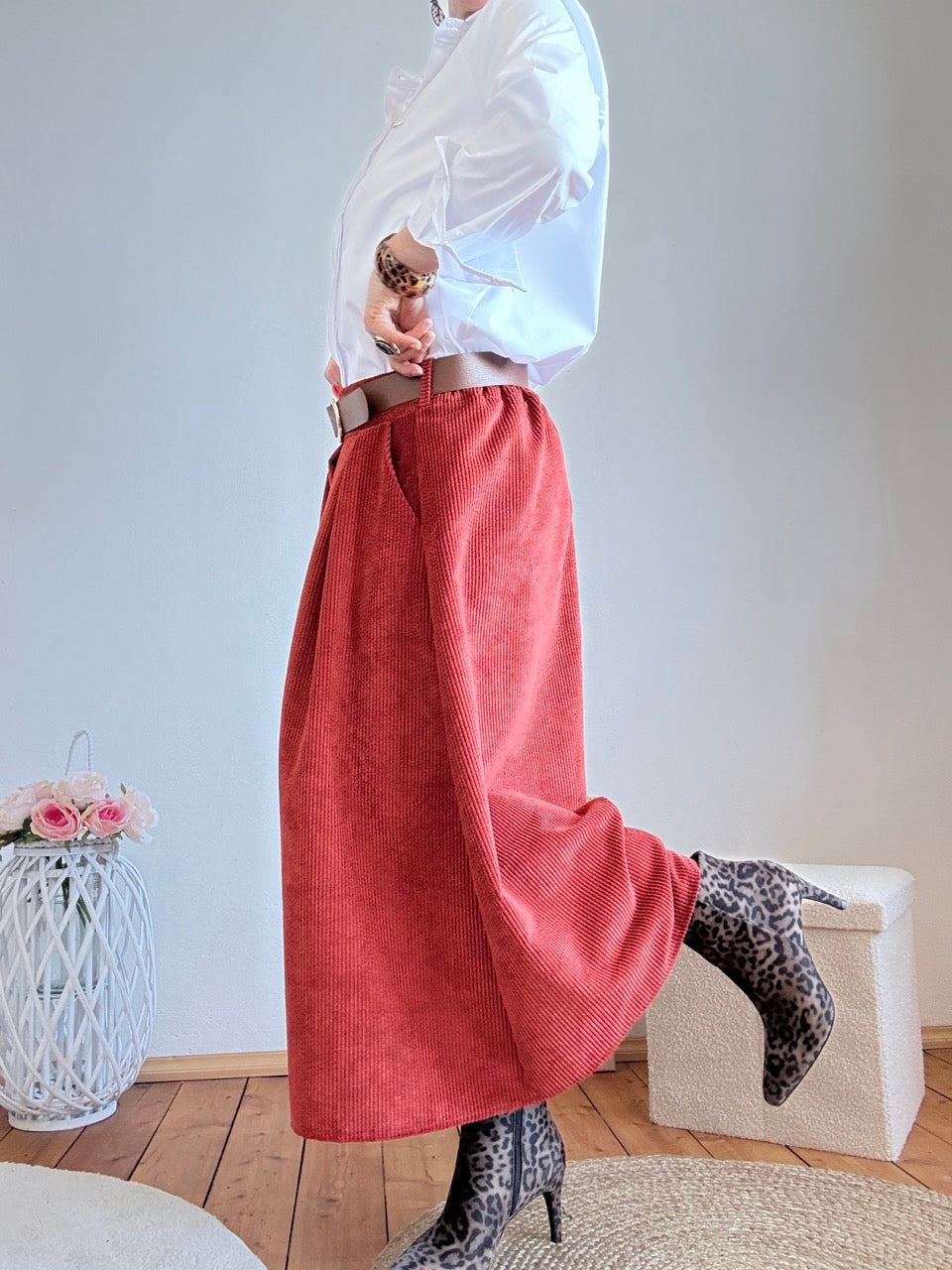 • Unser BESTSELLER Maxi Rock mit Gürtel jetzt in Cord Optik, in Ziegelrot