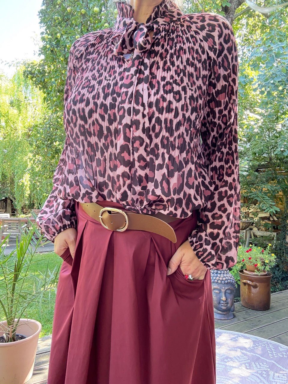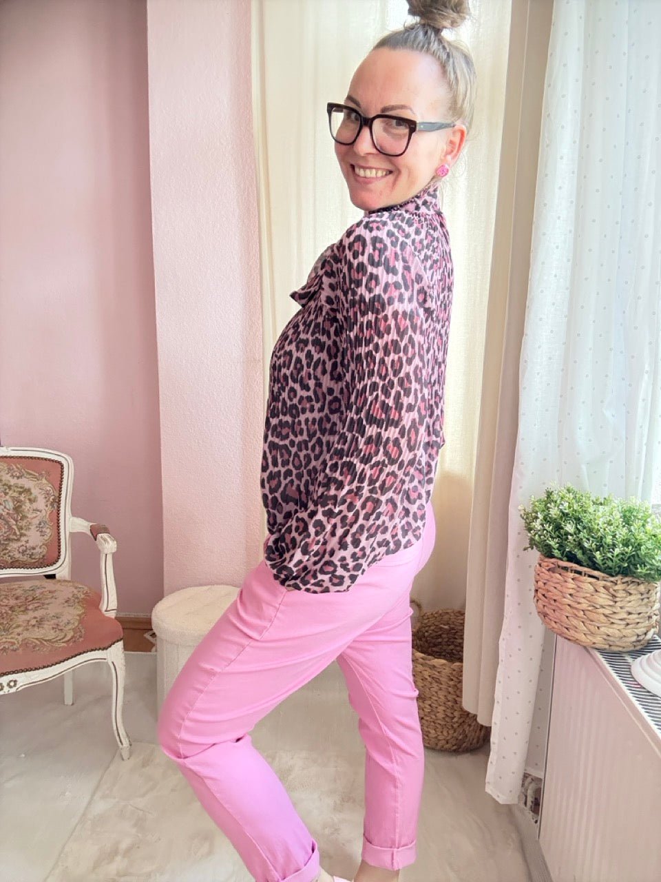- Wunderschöne, leichte Plissee Schluppen Bluse im Stil der 20er Jahre, in Leo Optik Fuchsia