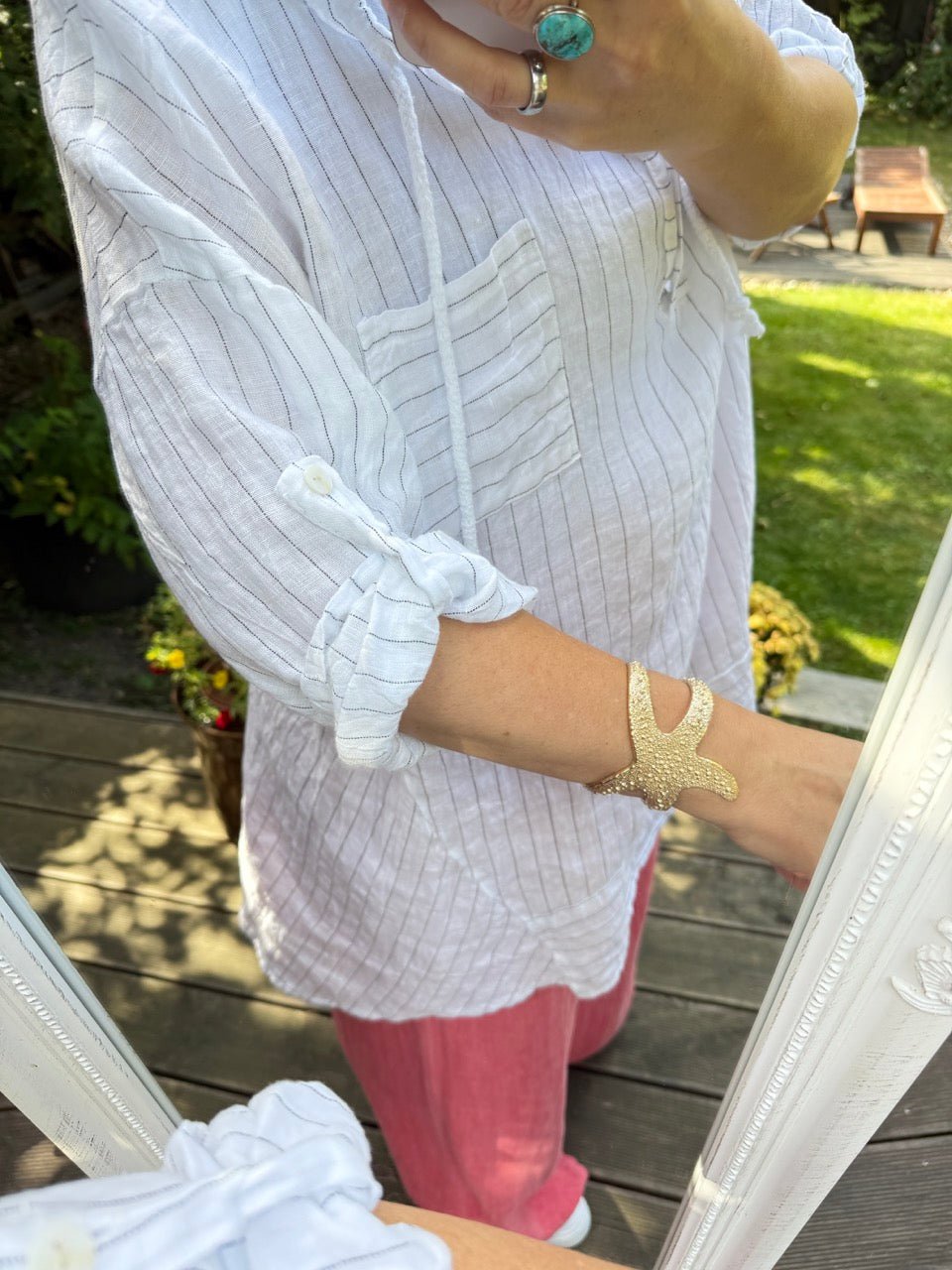 • Lässiges Leinen Oversize Long Shirt in Weiß, mit zarten Streifen