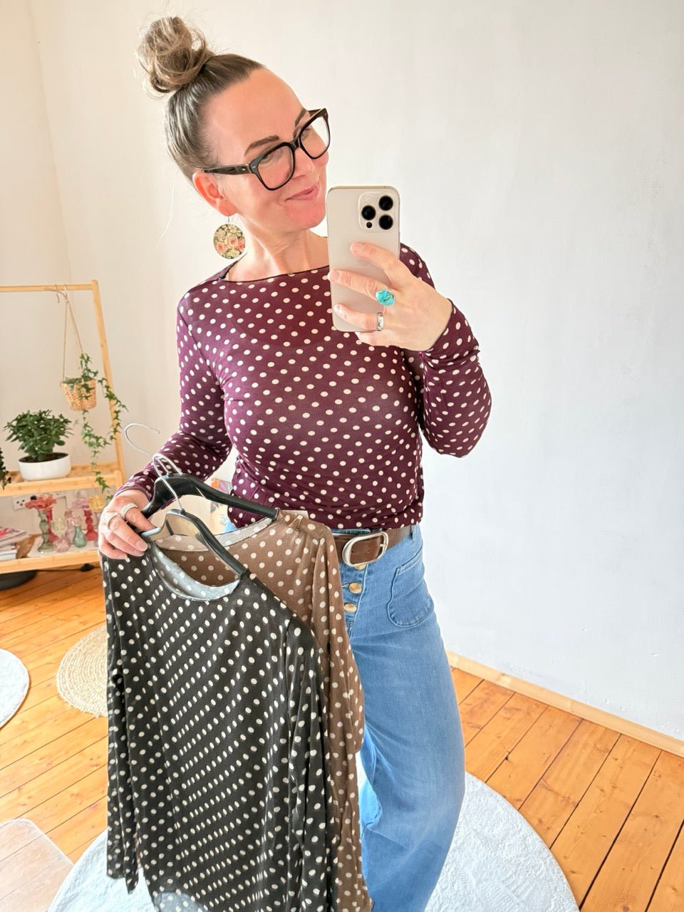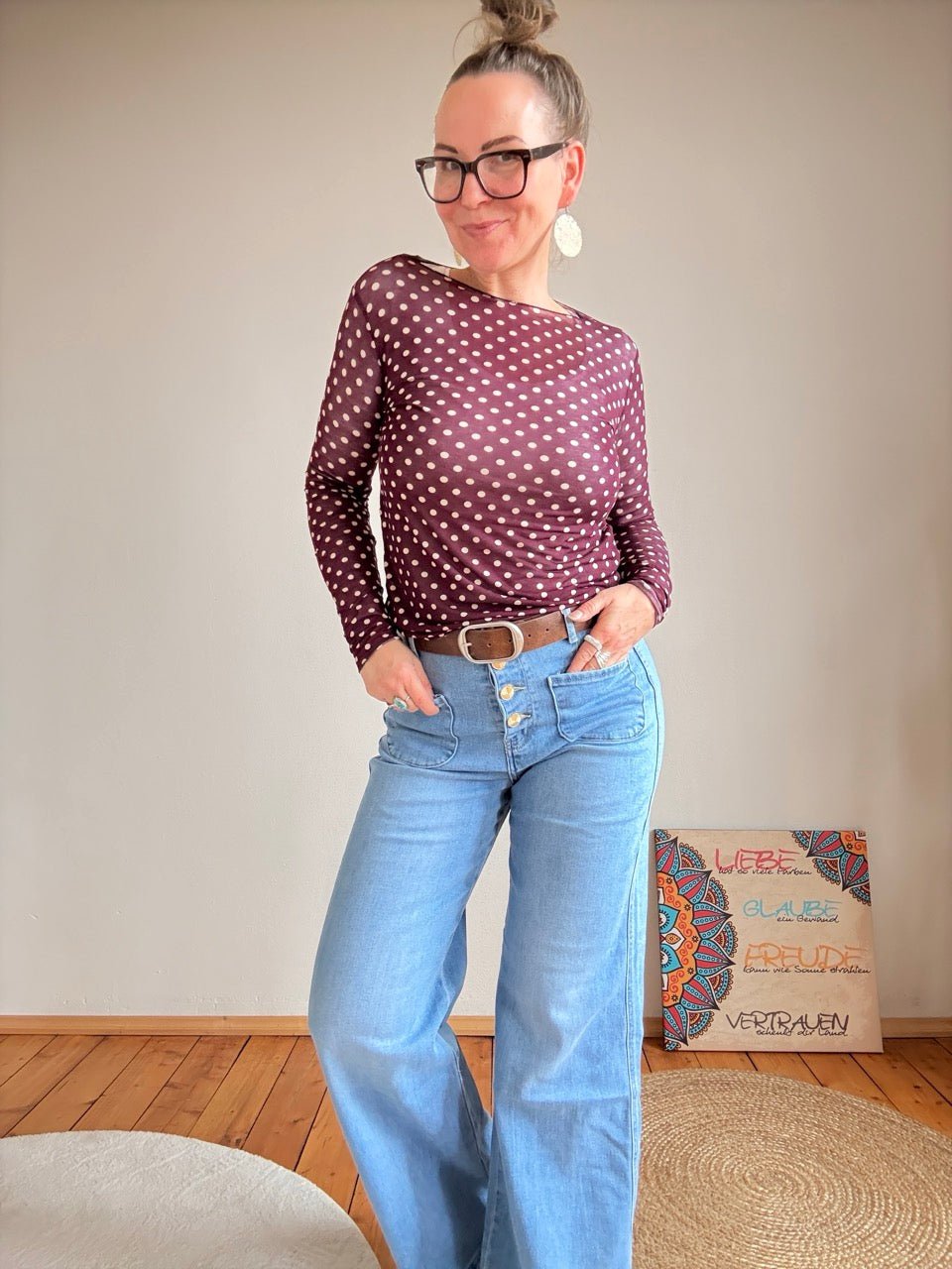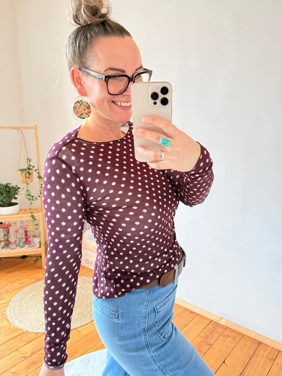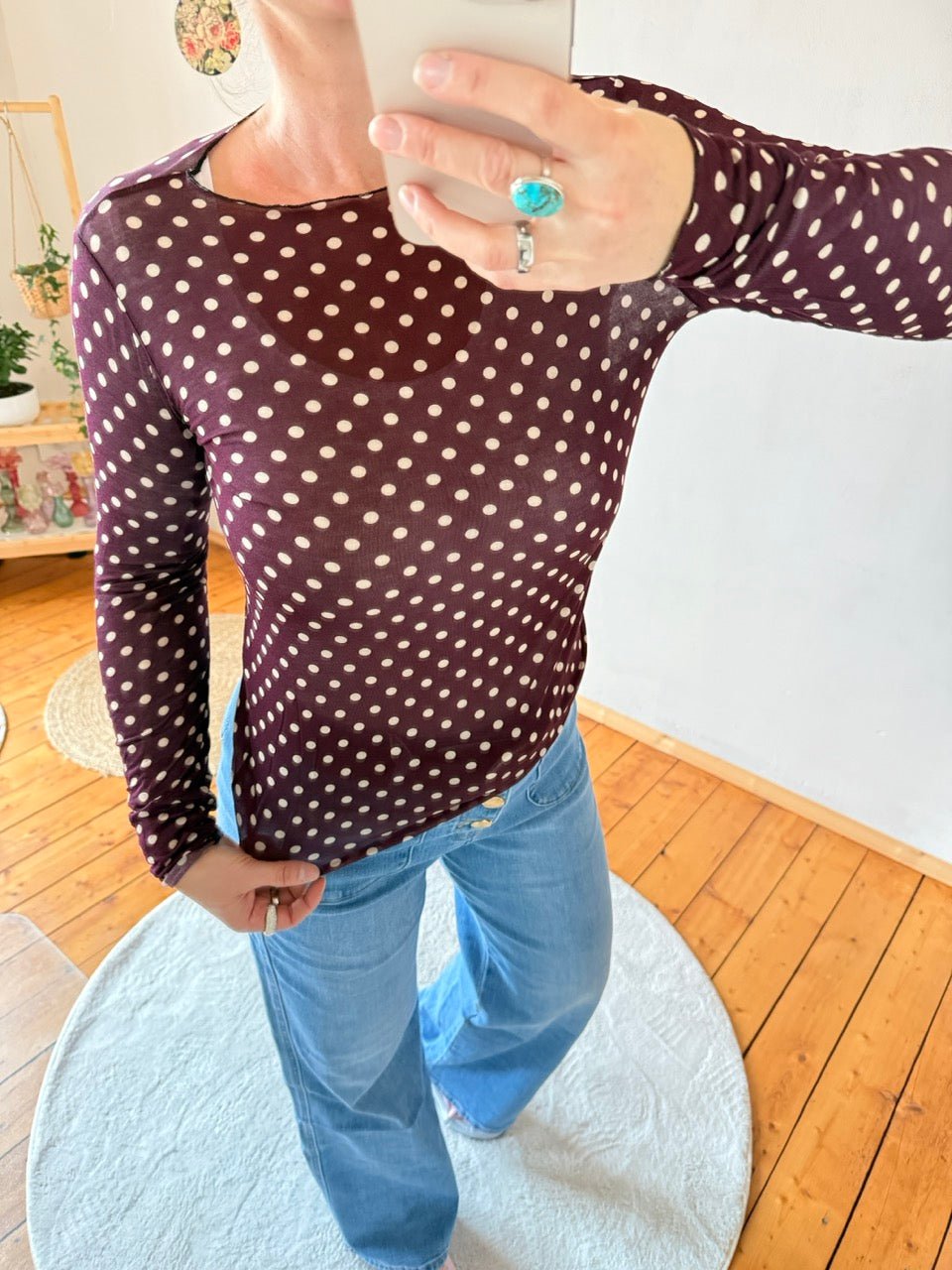 Shirt Langarm Pünktchen Beere transarent