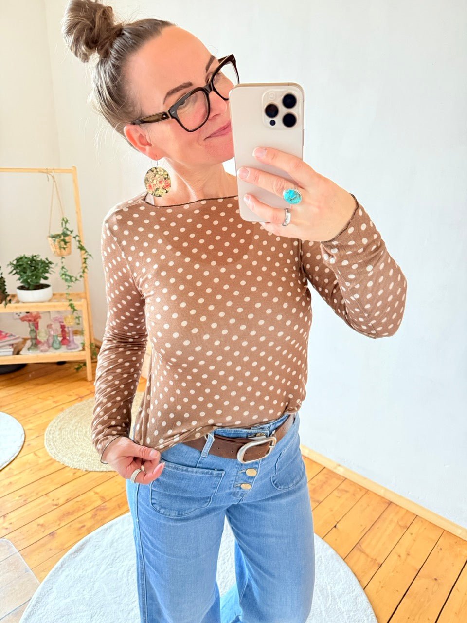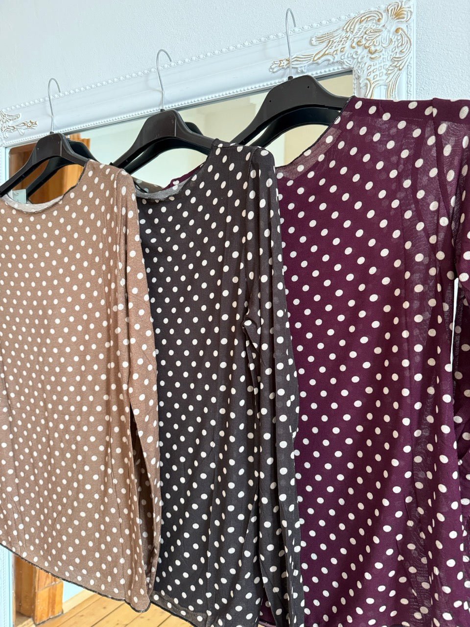 • Tolles, leicht transparentes Langarmshirt mit Punkten, in Cream, mit Kaschmir