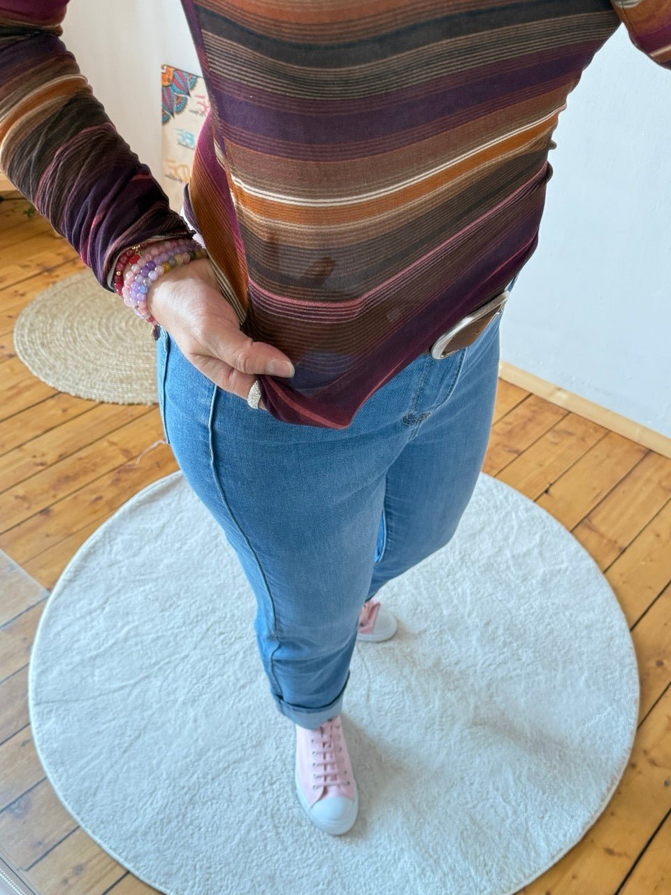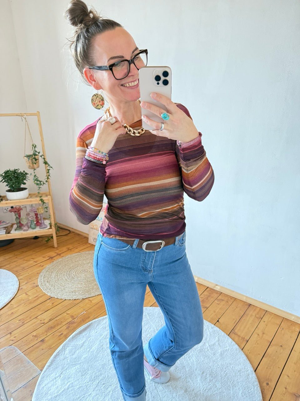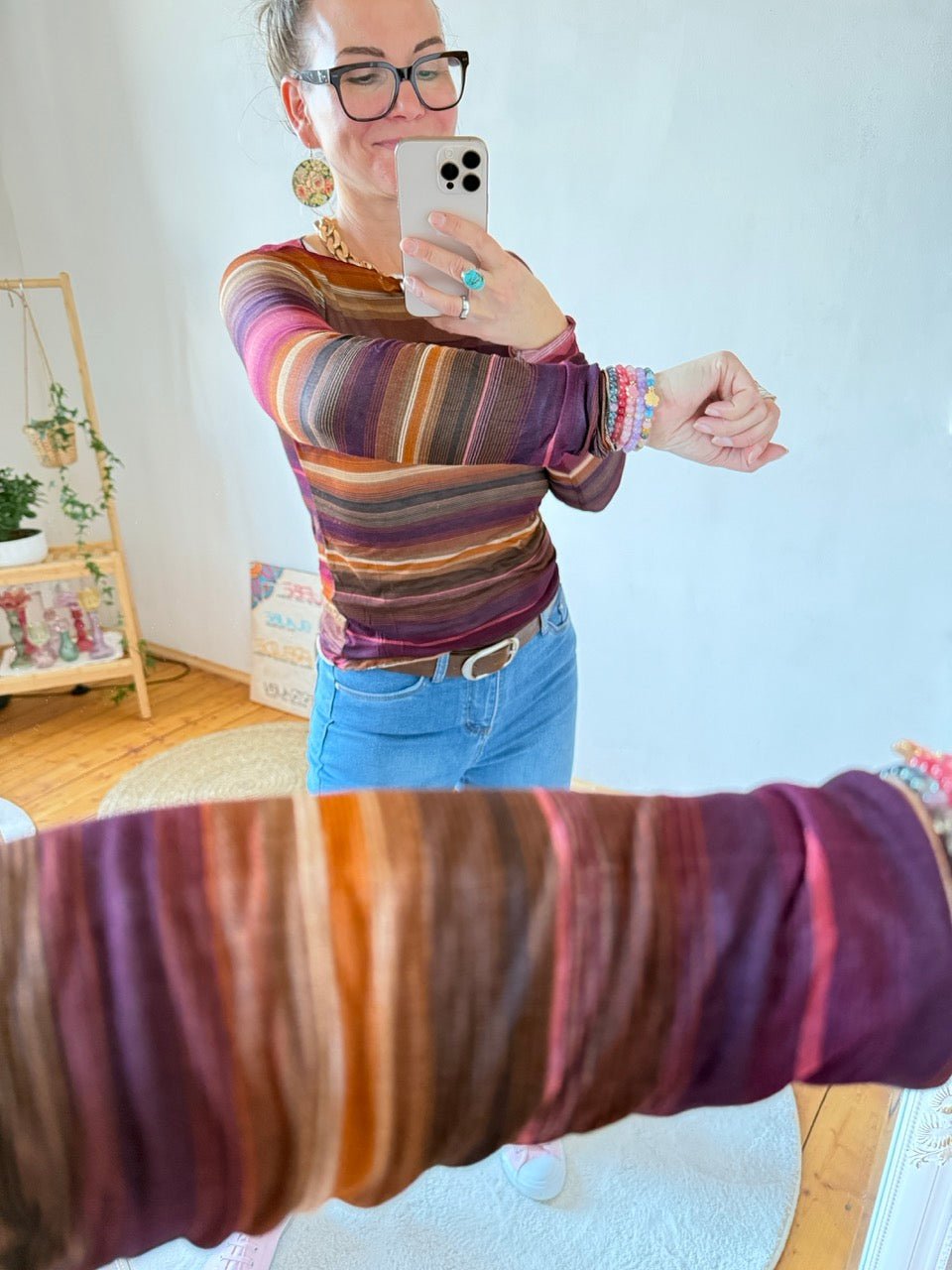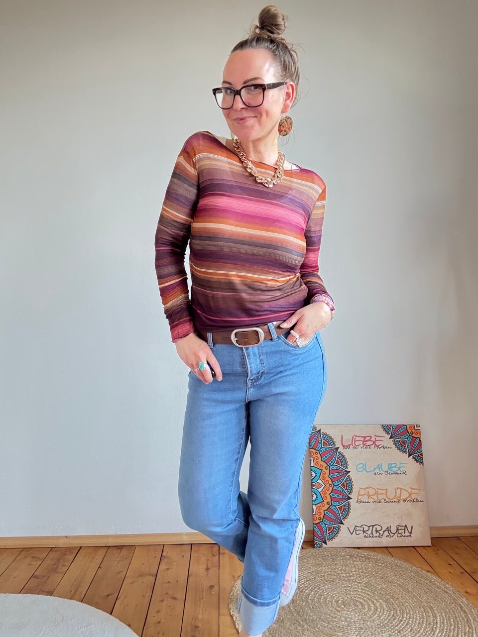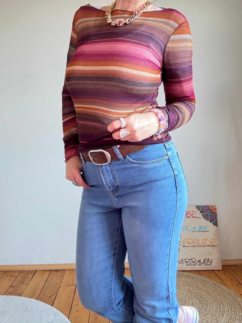 • Tolles, leicht transparentes Langarmshirt mit bunten Streifen, mit Kaschmir