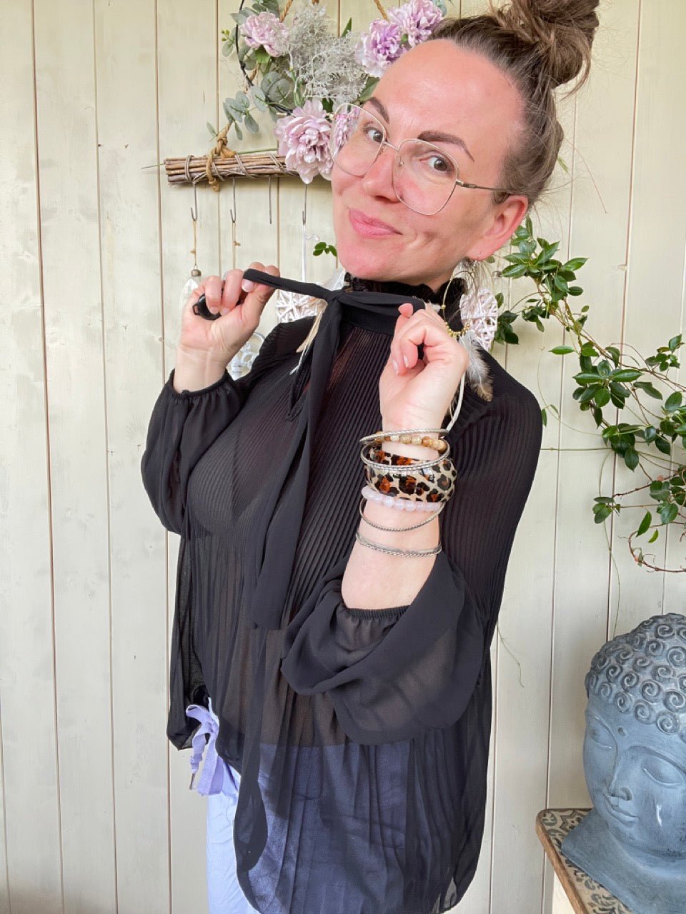 - Wunderschöne, leichte Plissee Schluppen Bluse in Schwarz, im Stil der 20er Jahre