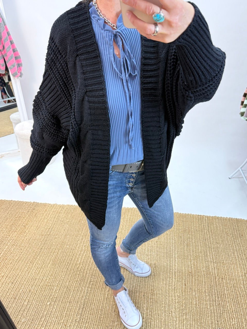 - leicht transparent mit Pilssee-Optik, mit langen Armen, A-förmig und hüftlang geschnitten