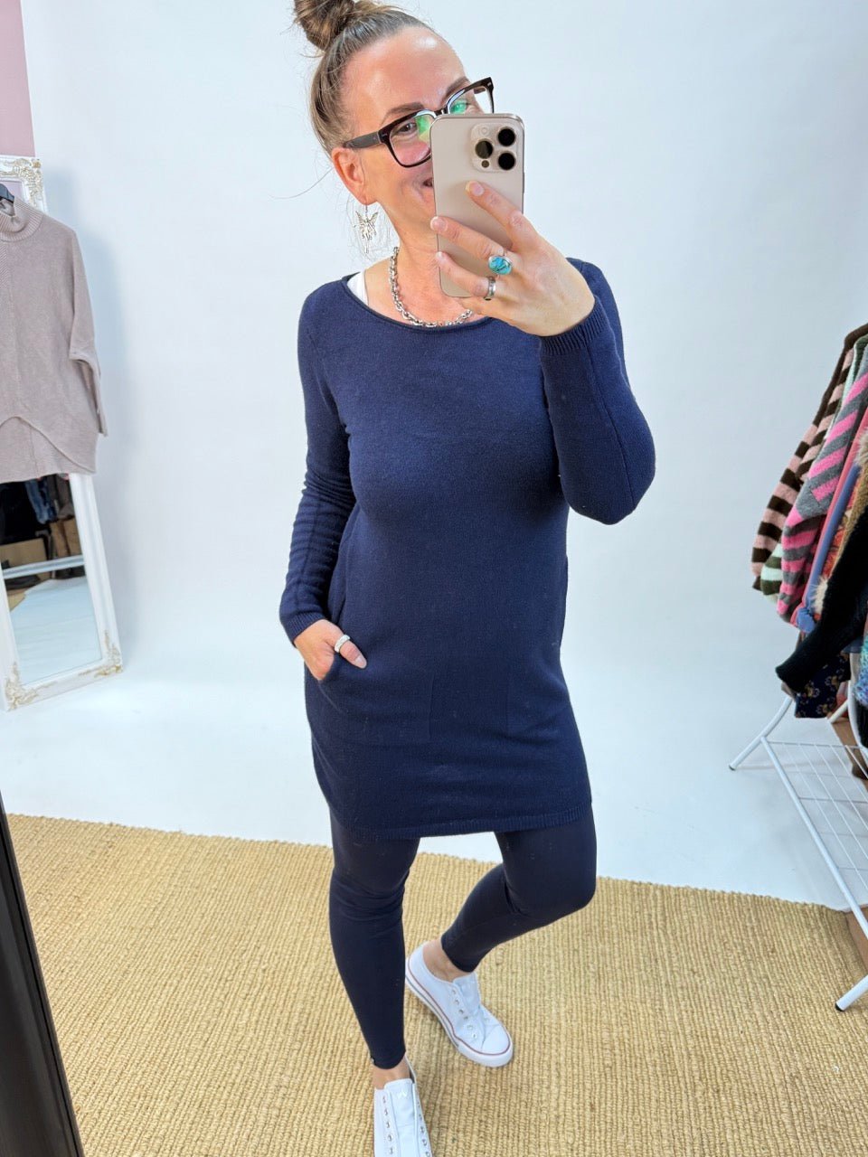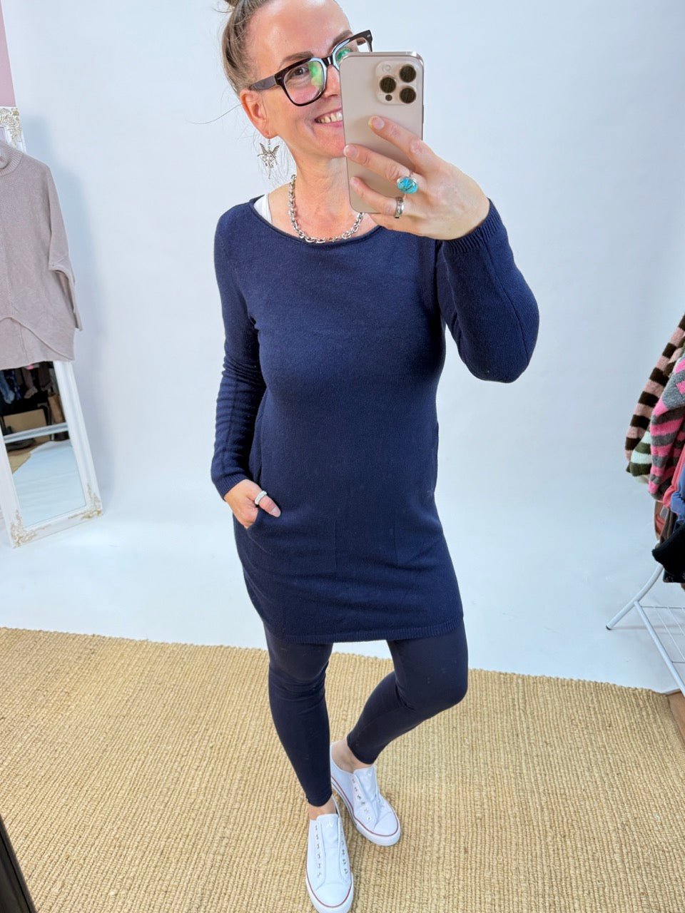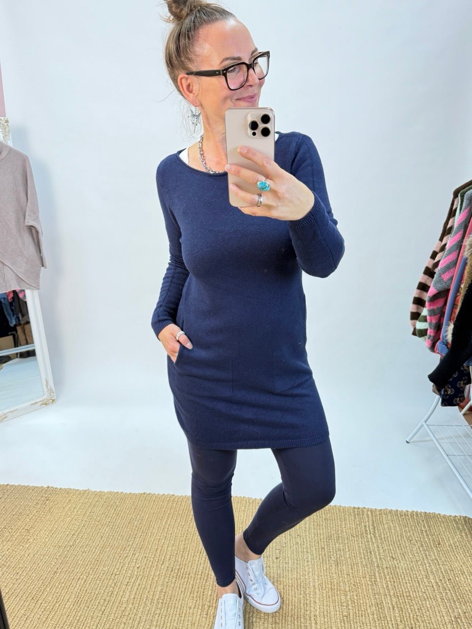 • Leichtes Strick-Kleid in Dunkelblau, Uni-Farben und dadurch toll kombinierbar