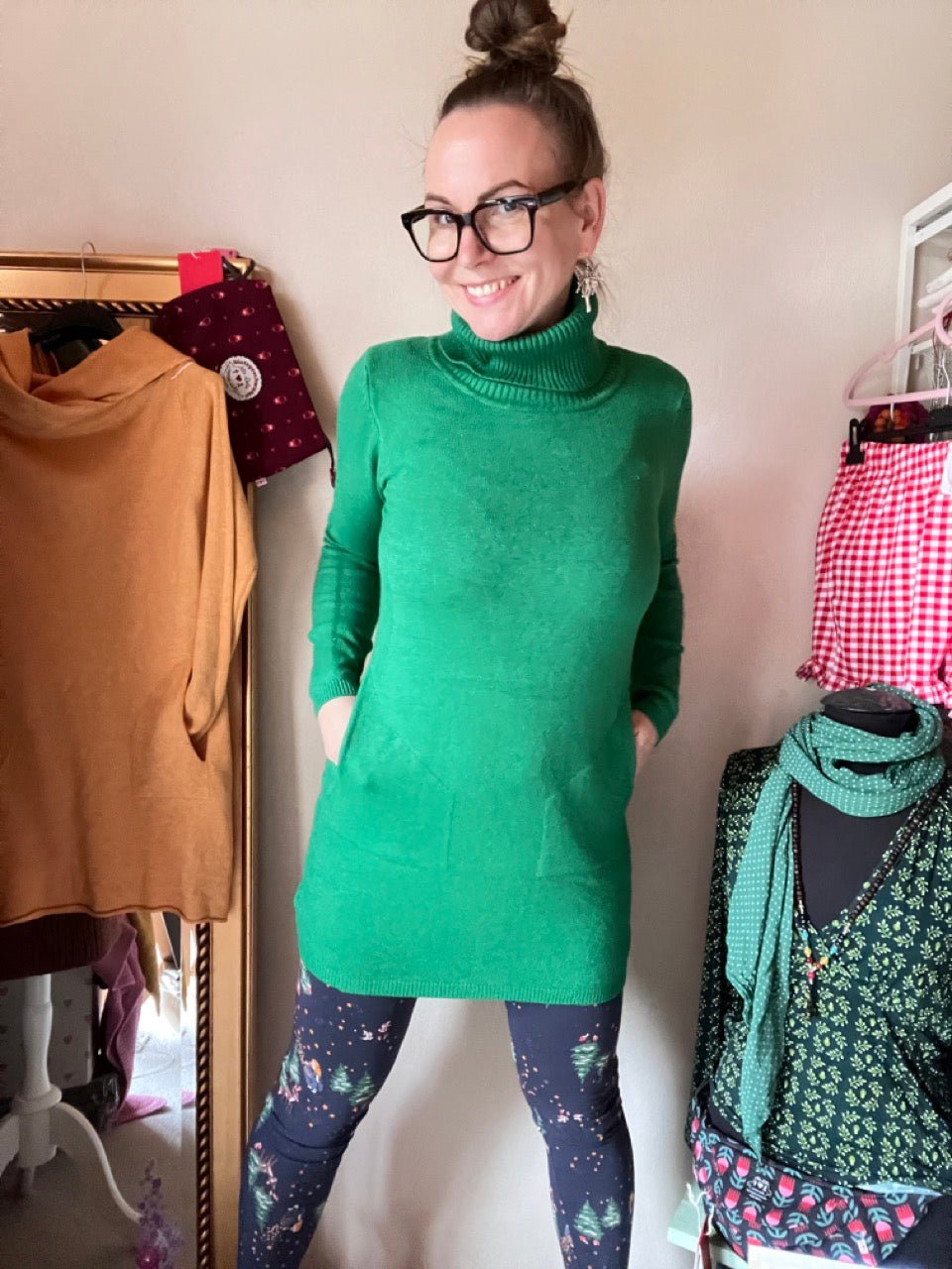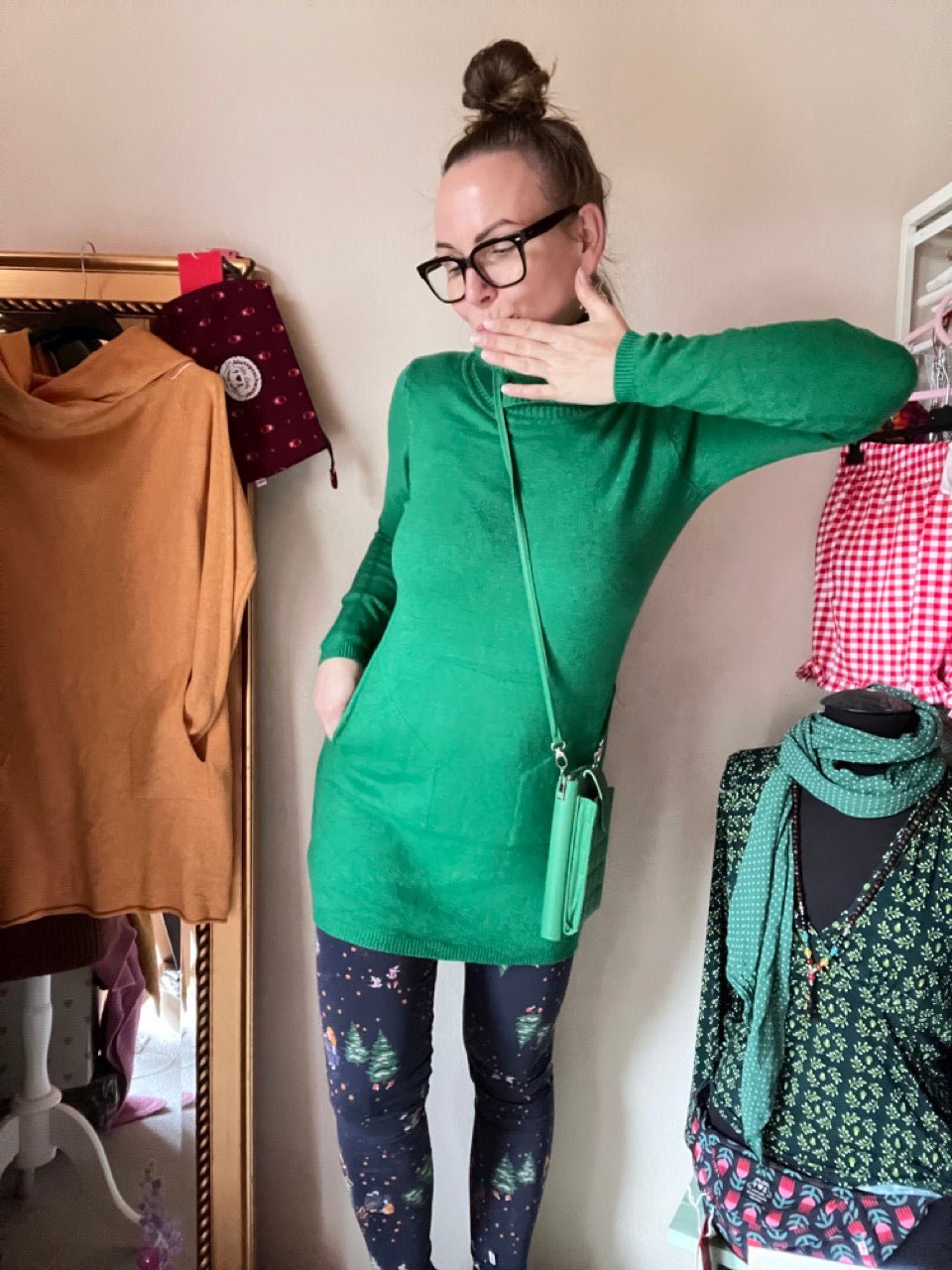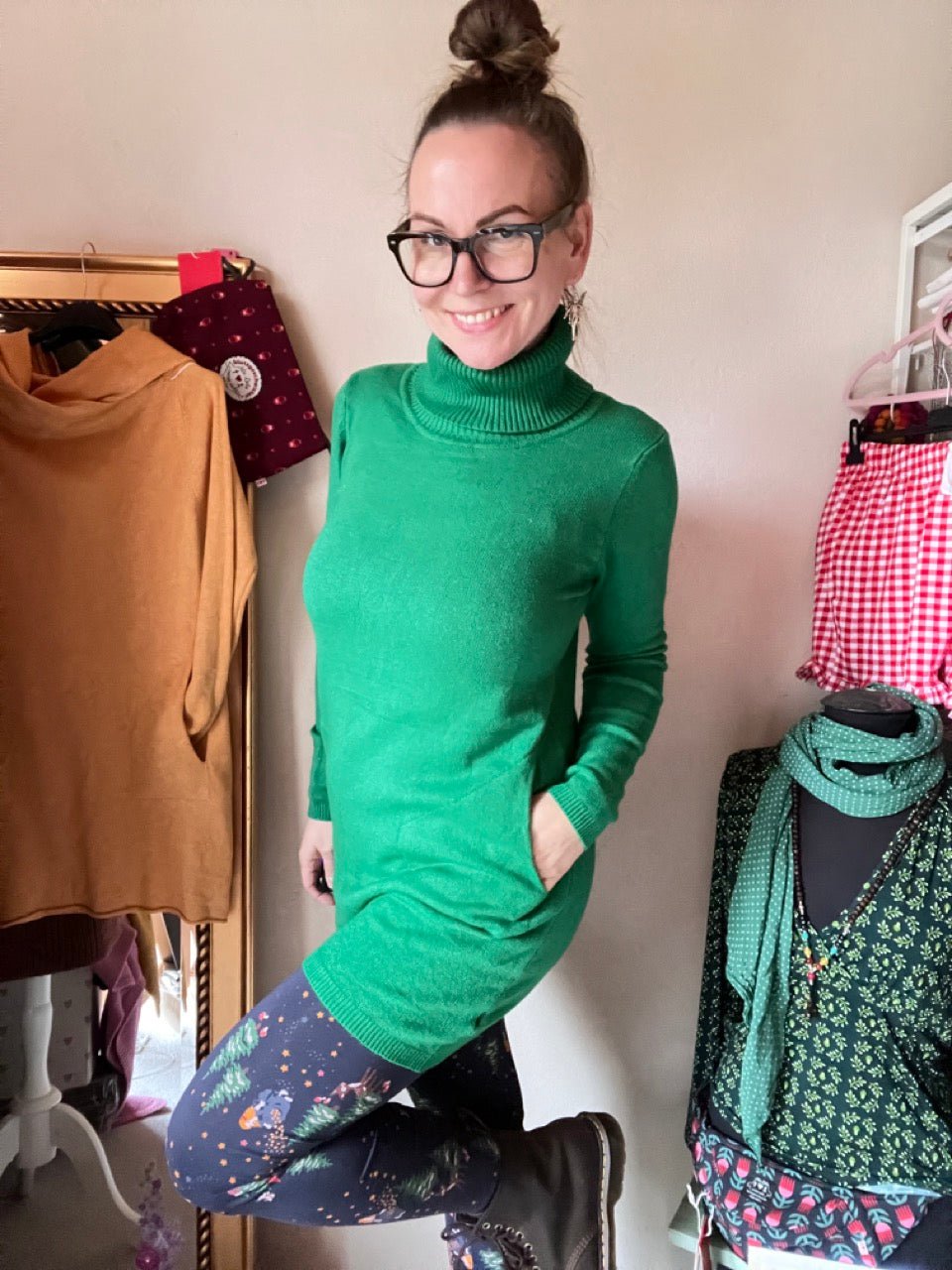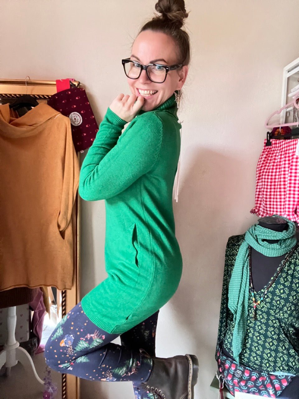 • Super gemütliches Strick-Kleid in Grün Uni-Farben und dadurch toll kombinierbar