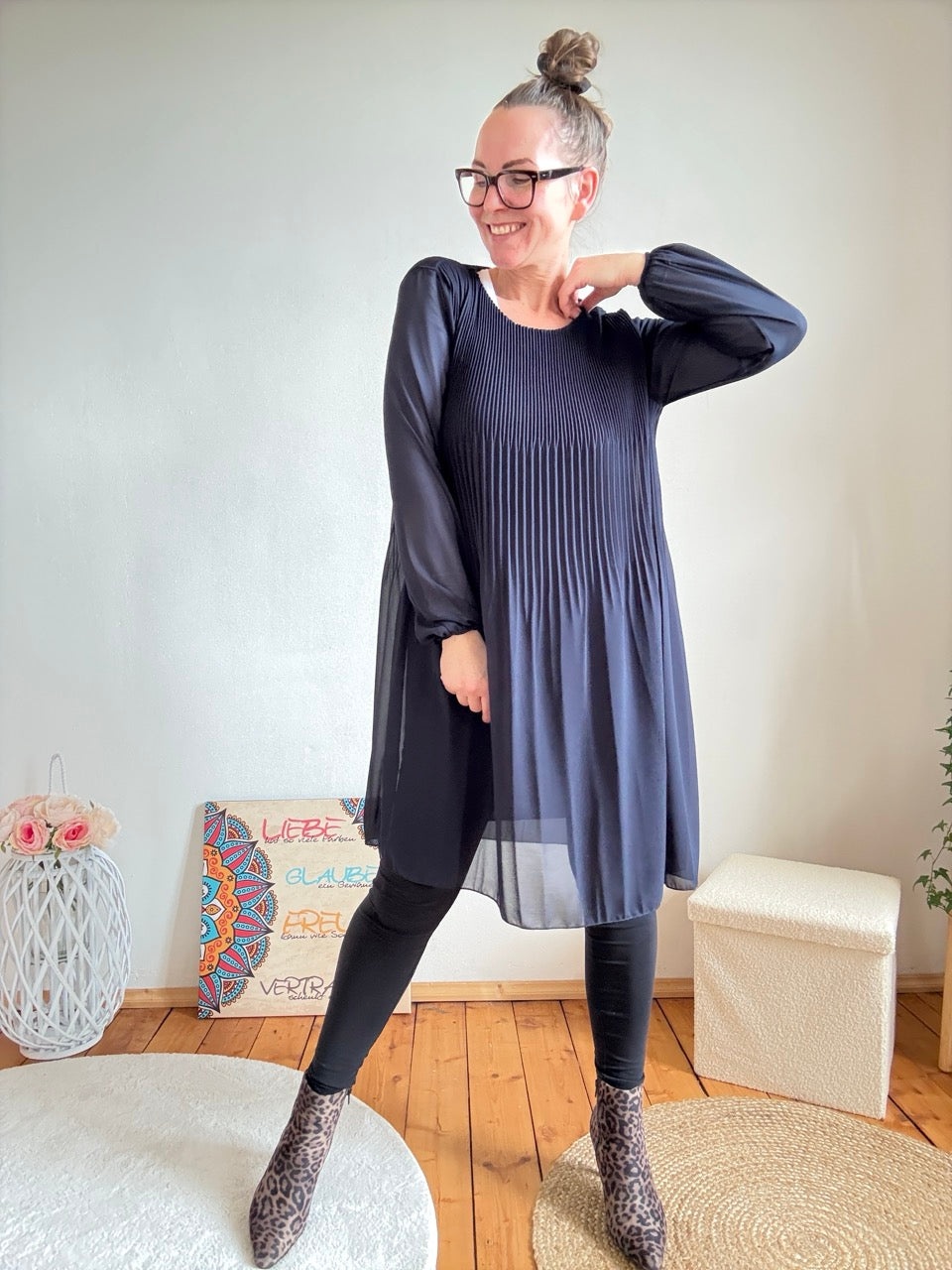 - Wunderschönes, leichtes Plissee Kleidchen in Dunkelblau, im Stil der 20er Jahre