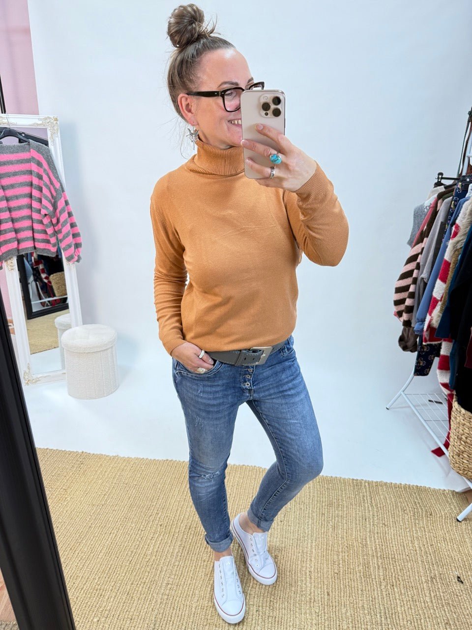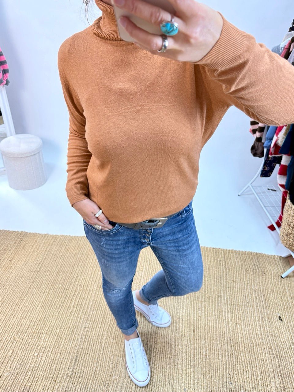• Toller, entspannt geschnittener Rollkragen Pulli in Karamell, ein Alltagsheld