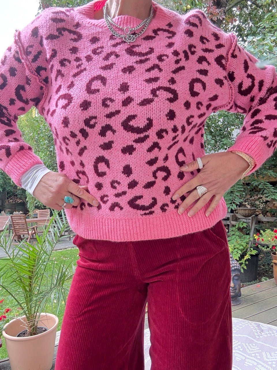 • Toller, weicher Pulli in Fuchsia / Pink, mit Leomuster mit Wohlfühlgarantie