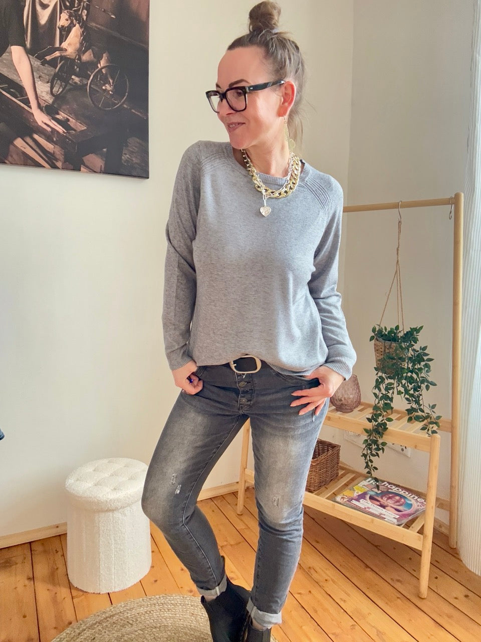 • Toller, entspannt geschnittener Pulli in Grau, ein Alltagsheld