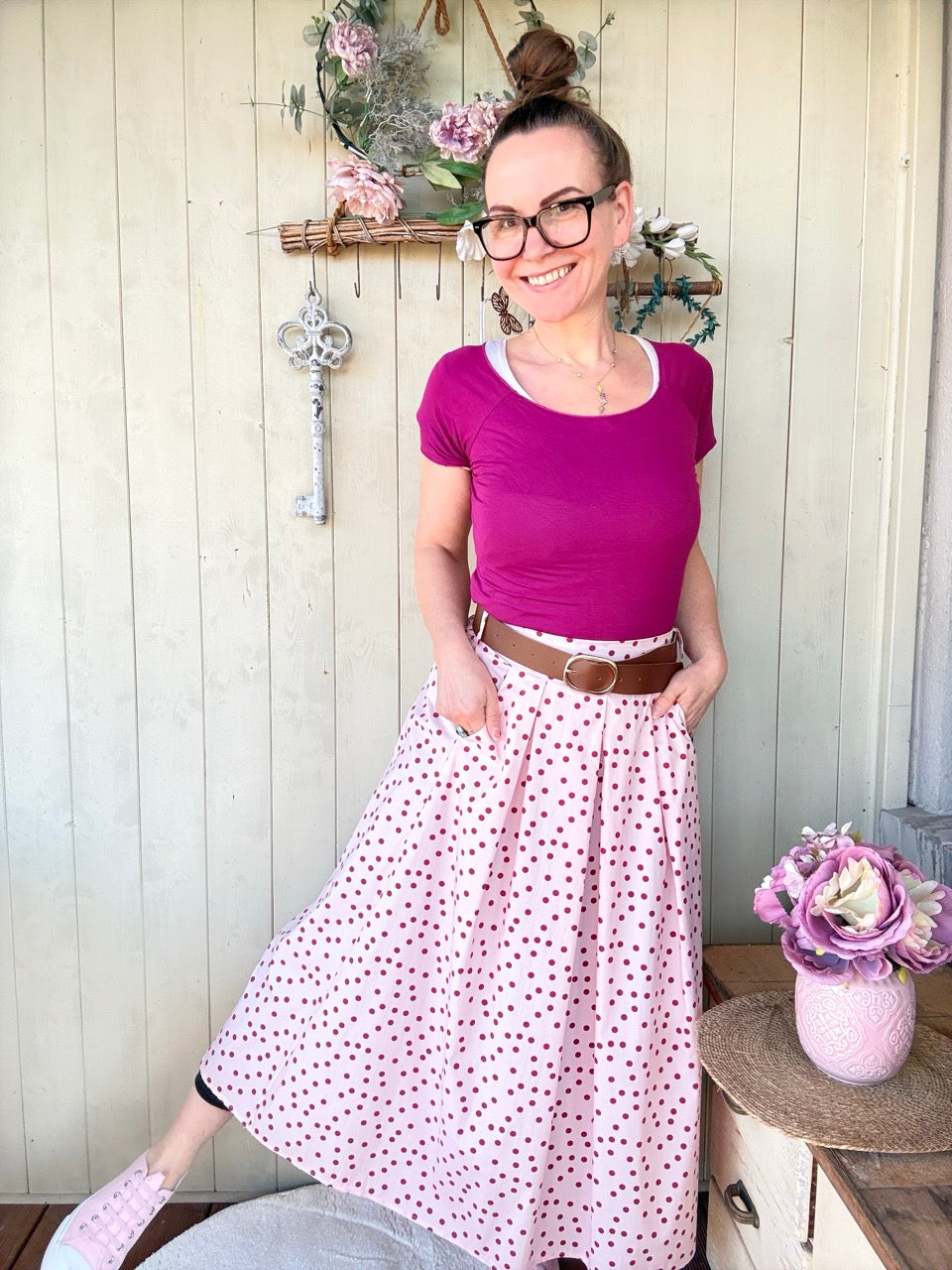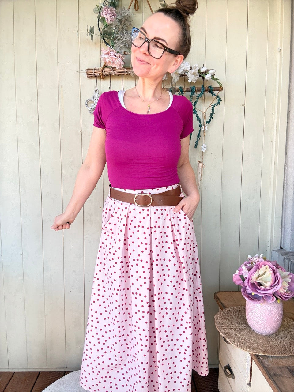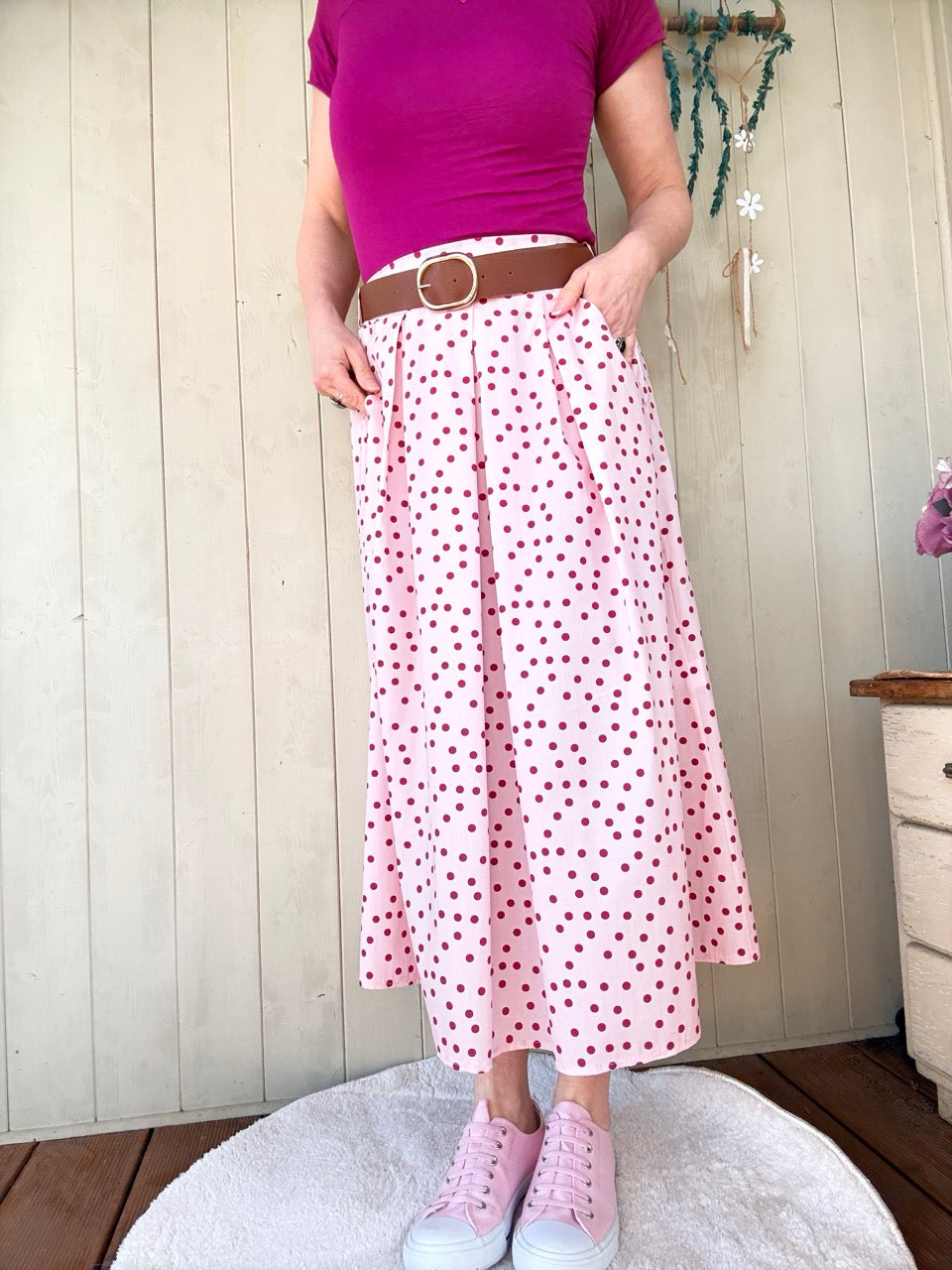 Rock Leni Rose / Punkte mit Gürtel