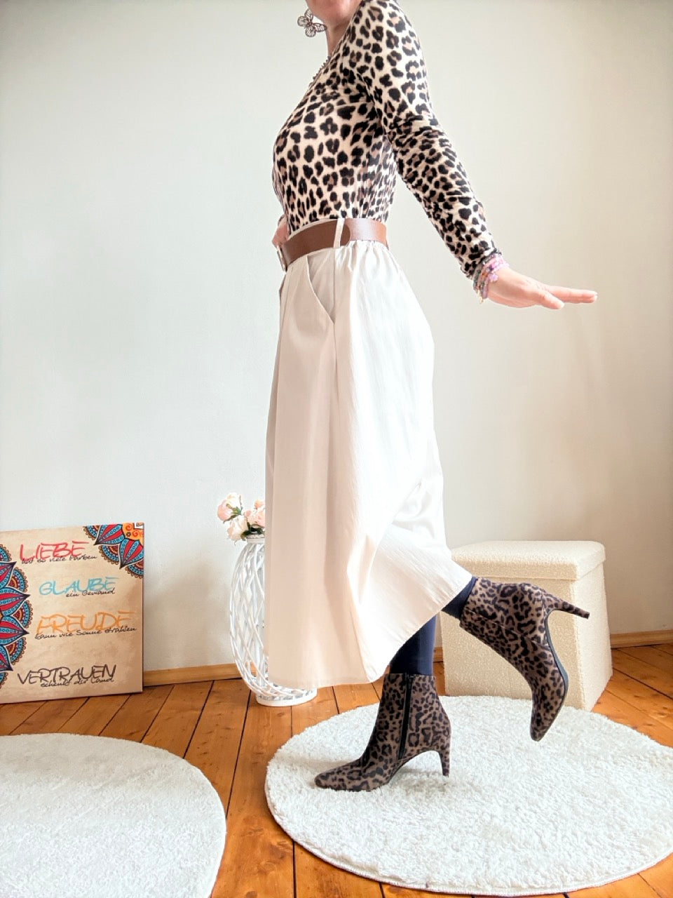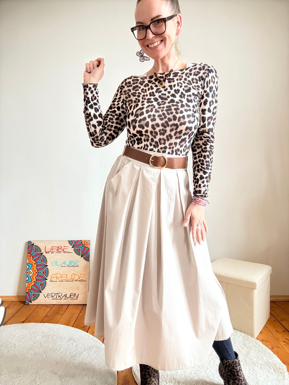 Rock Leni Soft Cream mit Gürtel