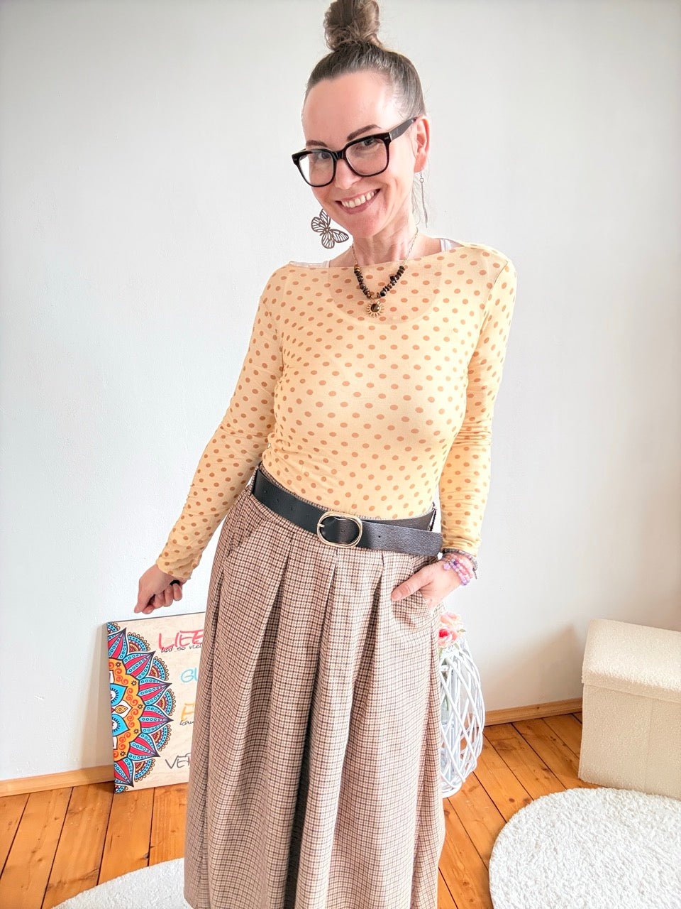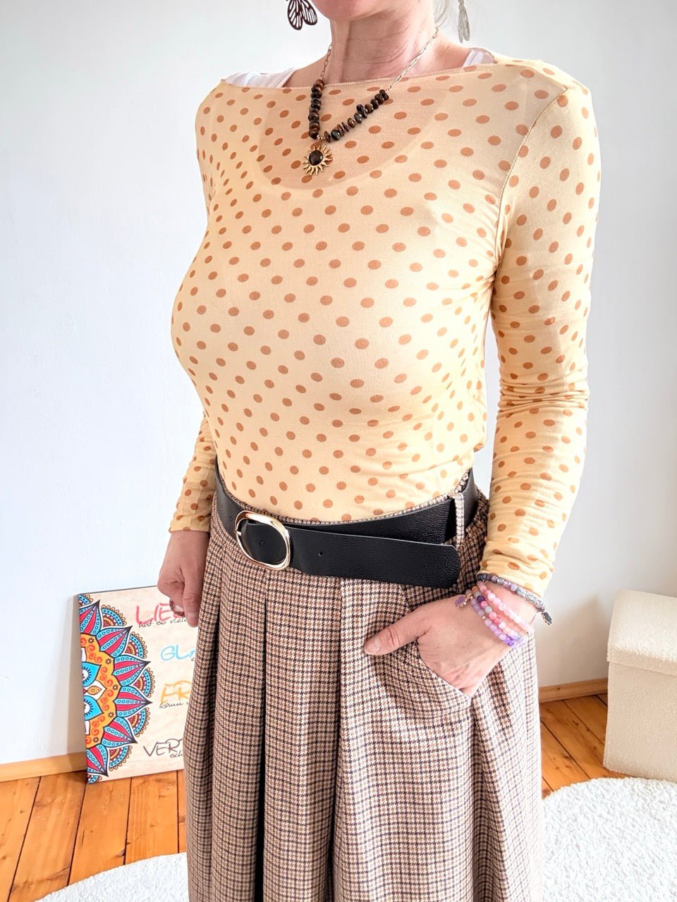 • Tolles, leicht transparentes Langarmshirt mit Punkten, in zartem Gelb, mit Kaschmir