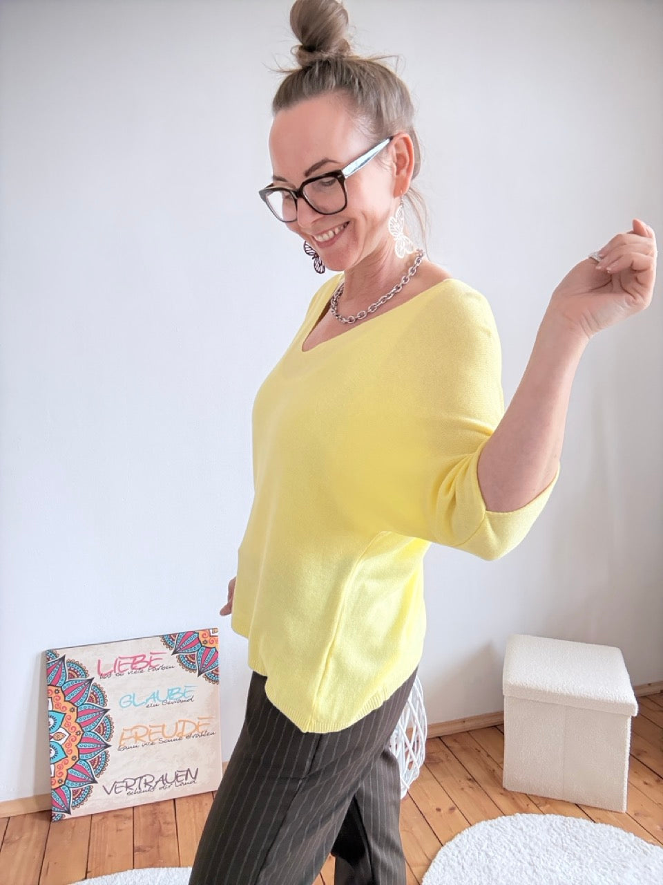 • aus einem tollen Modal-Mix, in Sonnengelb, hüftlang