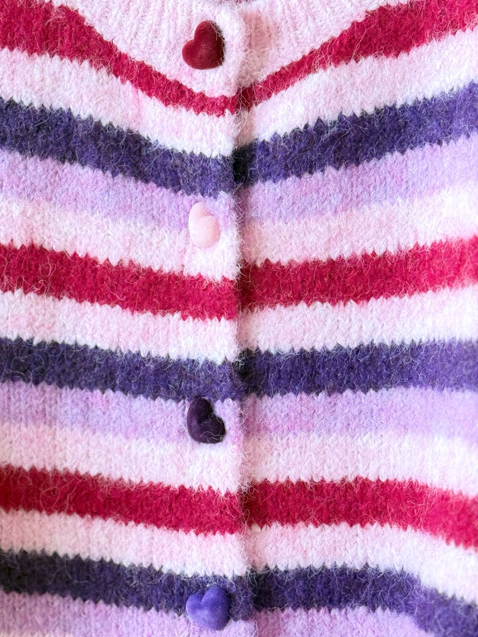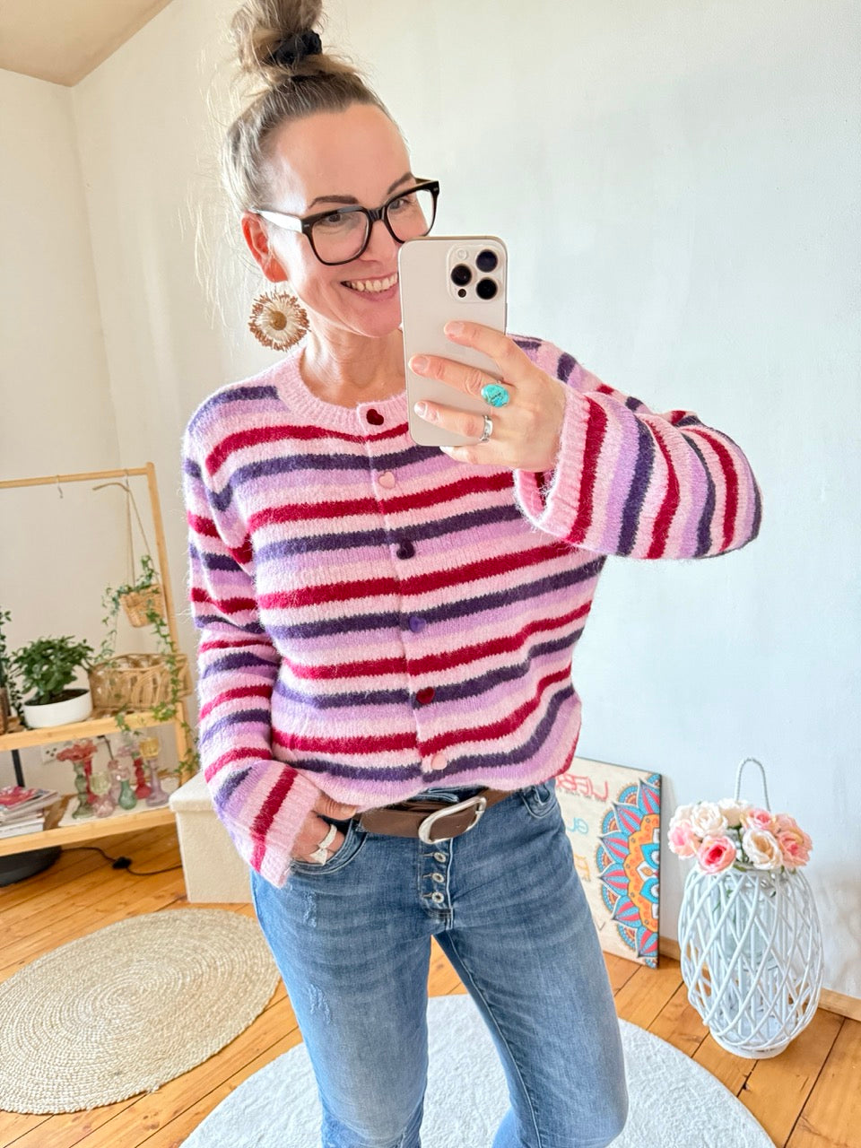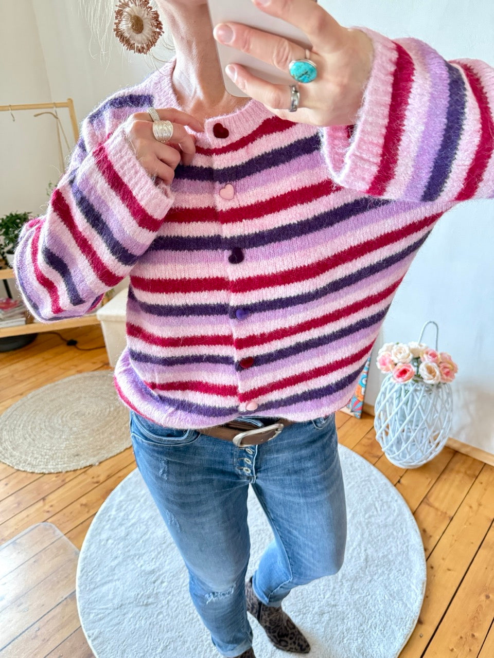 • Zauberhafte Strickjacke mit Streifenmix in Violett / Fuchsia