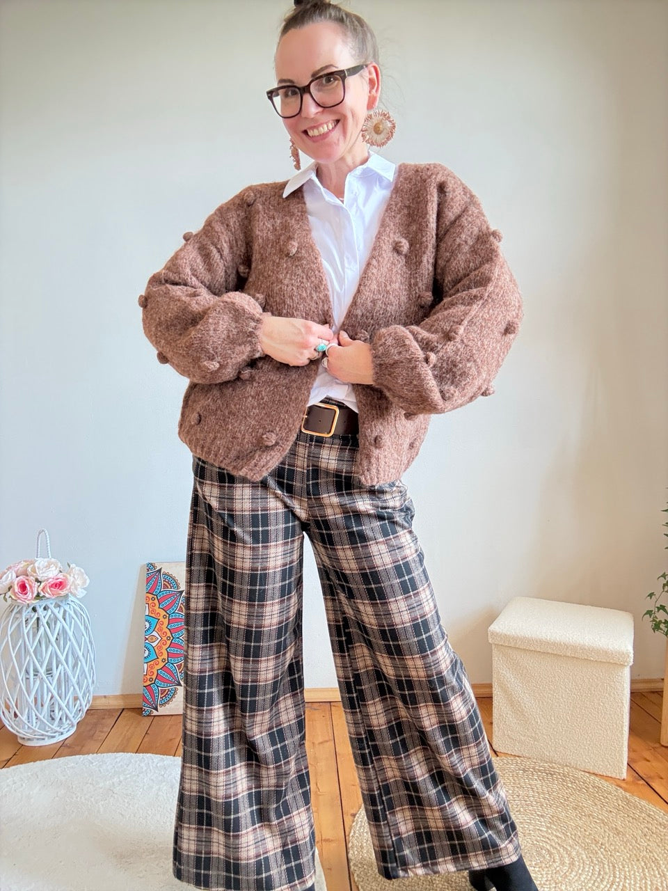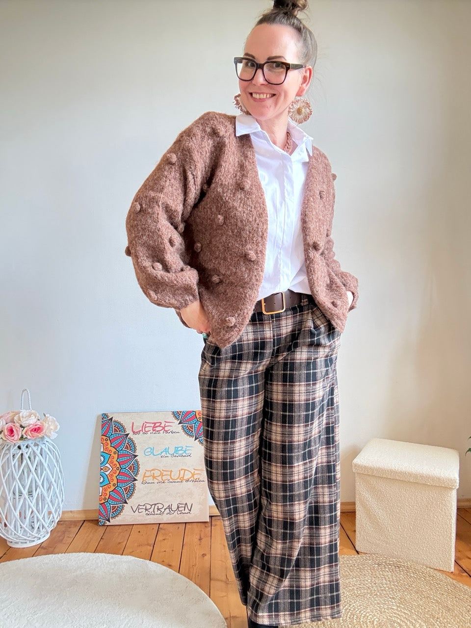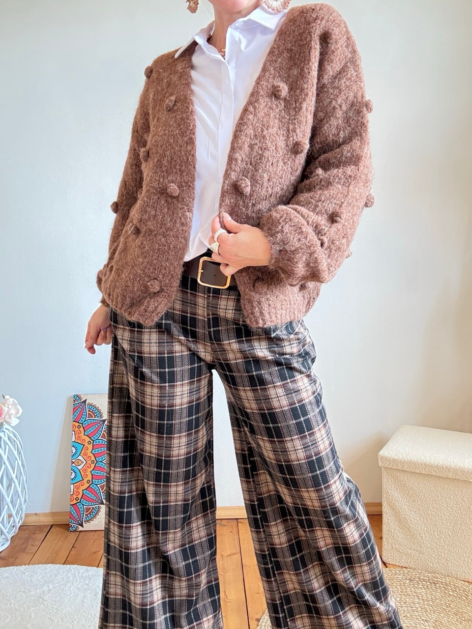 • Super gemütliche, locker geschnittene Strickjacke, in Toffee, mit tollen aufgesetzten Bommeln und kleinem Wollanteil