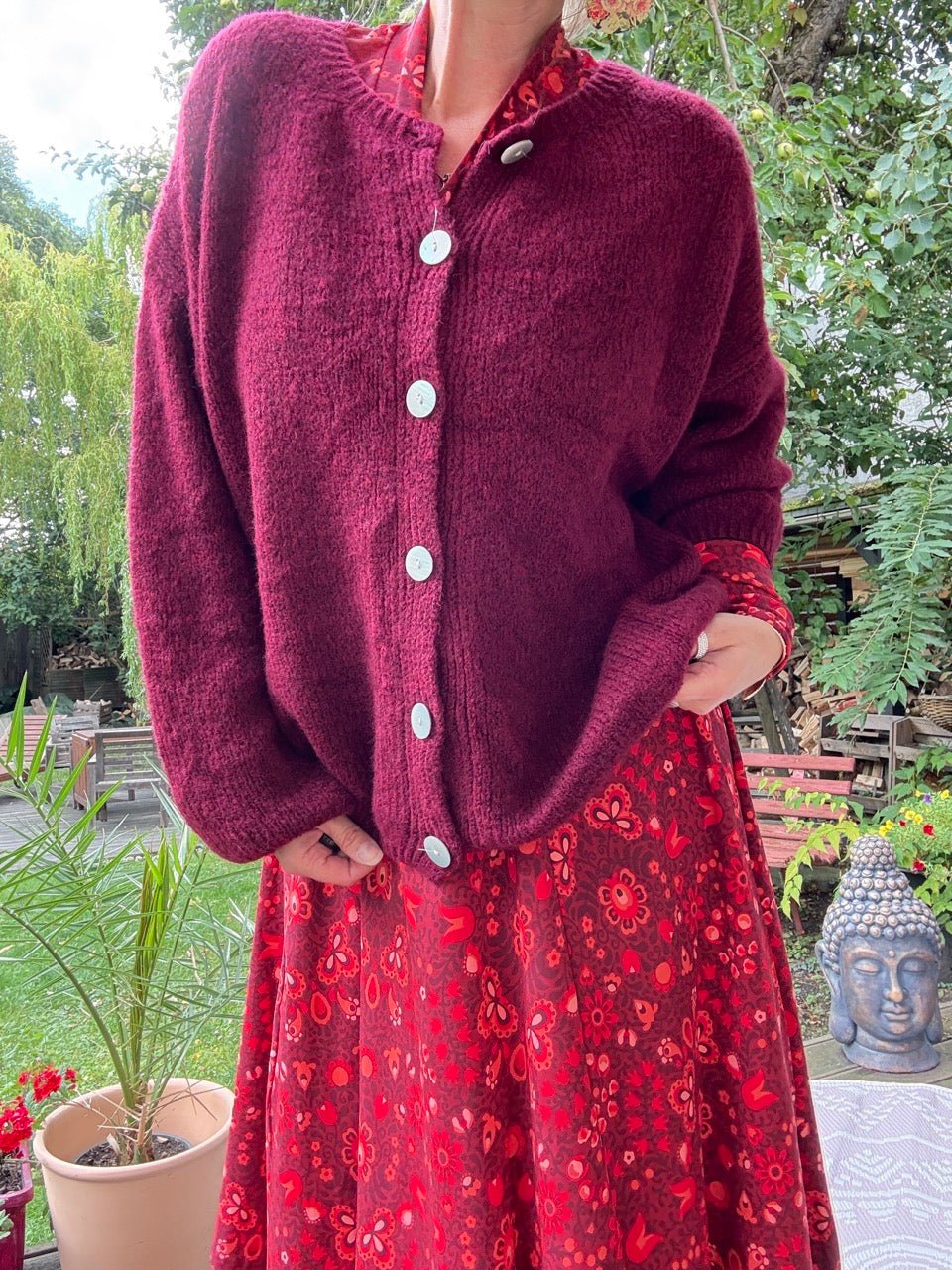 • Super gemütliche Strickjacke in Cherry Dunkel/Weinrot und kleinem Wollanteil