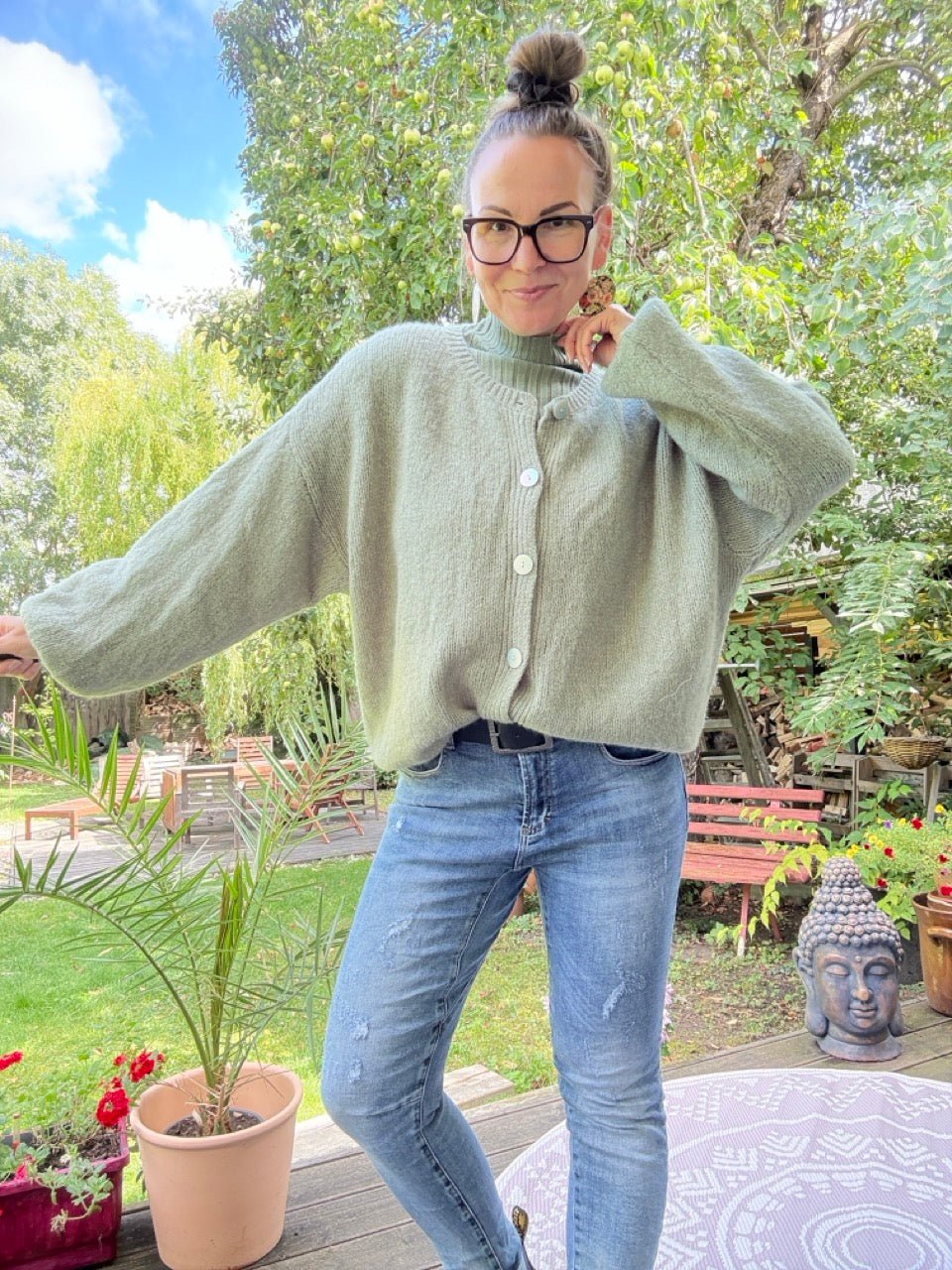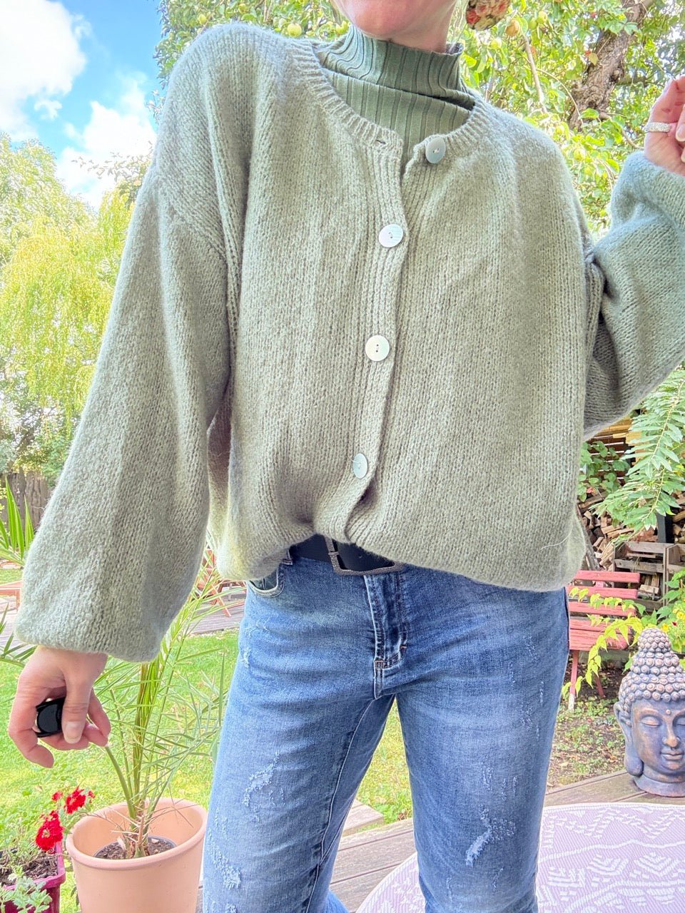 • Super gemütliche Strickjacke in Salbei / Olive und kleinem Wollanteil