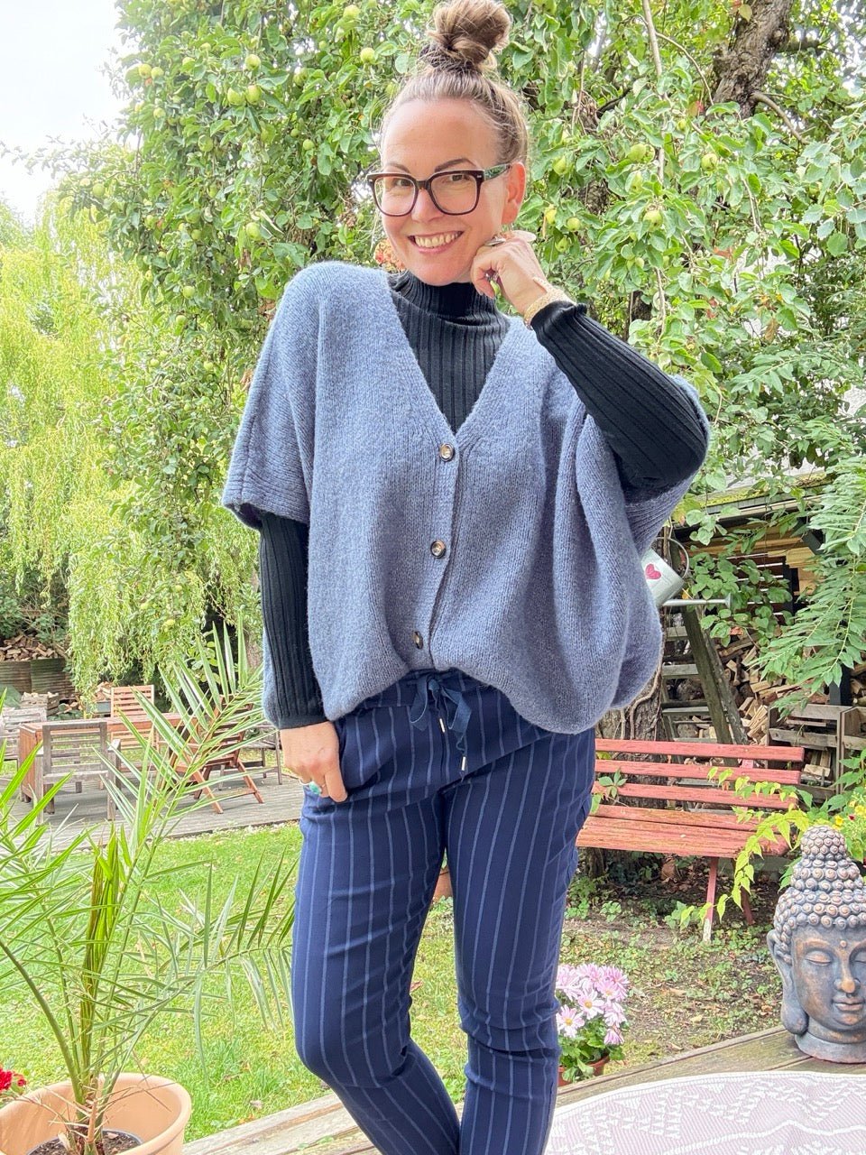 • Super gemütliche, weit geschnittene Strickjacke mit kurzen Armen in Jeansblau und kleinem Wollanteil