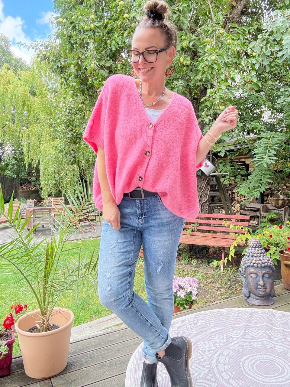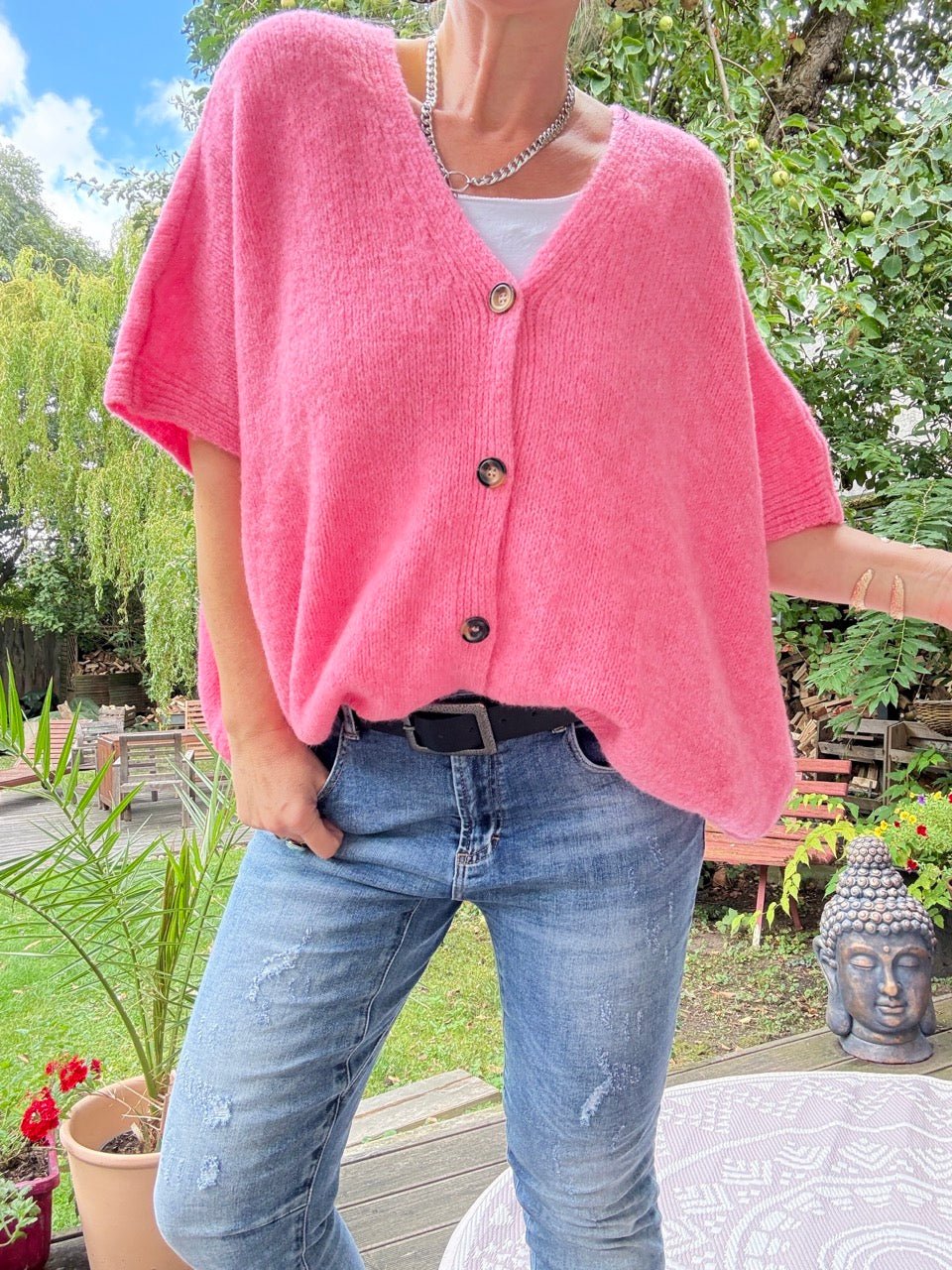 • Super gemütliche, weit geschnittene Strickjacke mit kurzen Armen in strahlendem Rose und kleinem Wollanteil